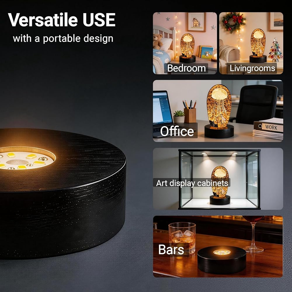 تعزيز شاشتك: تم تصميم قاعدة إضاءة LED هذه لإضاءة الأعمال الفنية الكريستالية والتماثيل الزجاجية والمقتنيات وغيرها من الأشياء الزخرفية بشكل جميل، مما يخلق نقطة محورية أنيقة