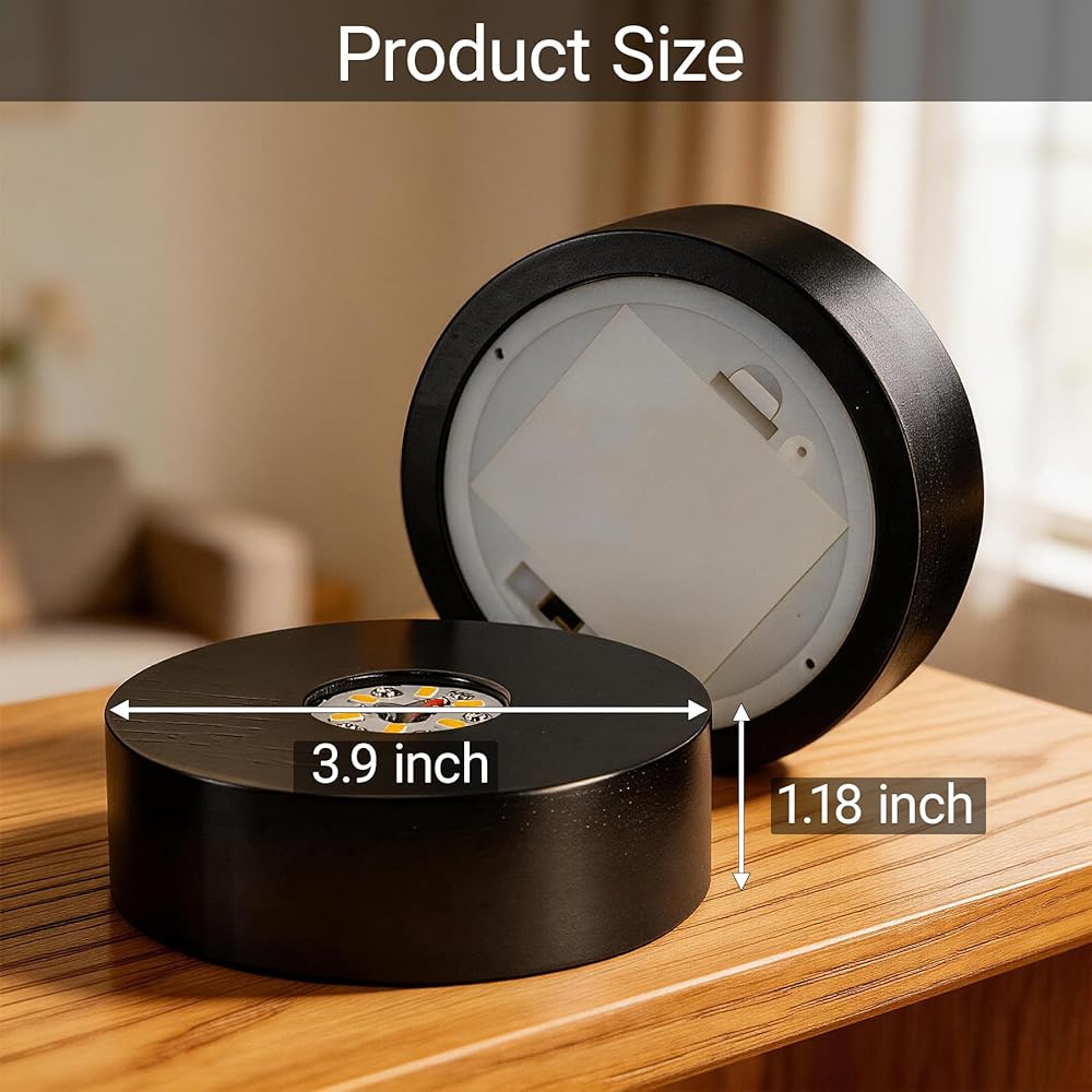 إعداد بسيط واستخدام متعدد الاستخدامات: التصميم المدمج مقاس 10 سم × 10 سم يناسب بشكل خفي معظم الأشياء. يمكنك بسهولة تحويل بلوراتك أو ديكوراتك العزيزة إلى شاشات مضيئة مذهلة للأرفف أو الطاولات أو الخزانات.