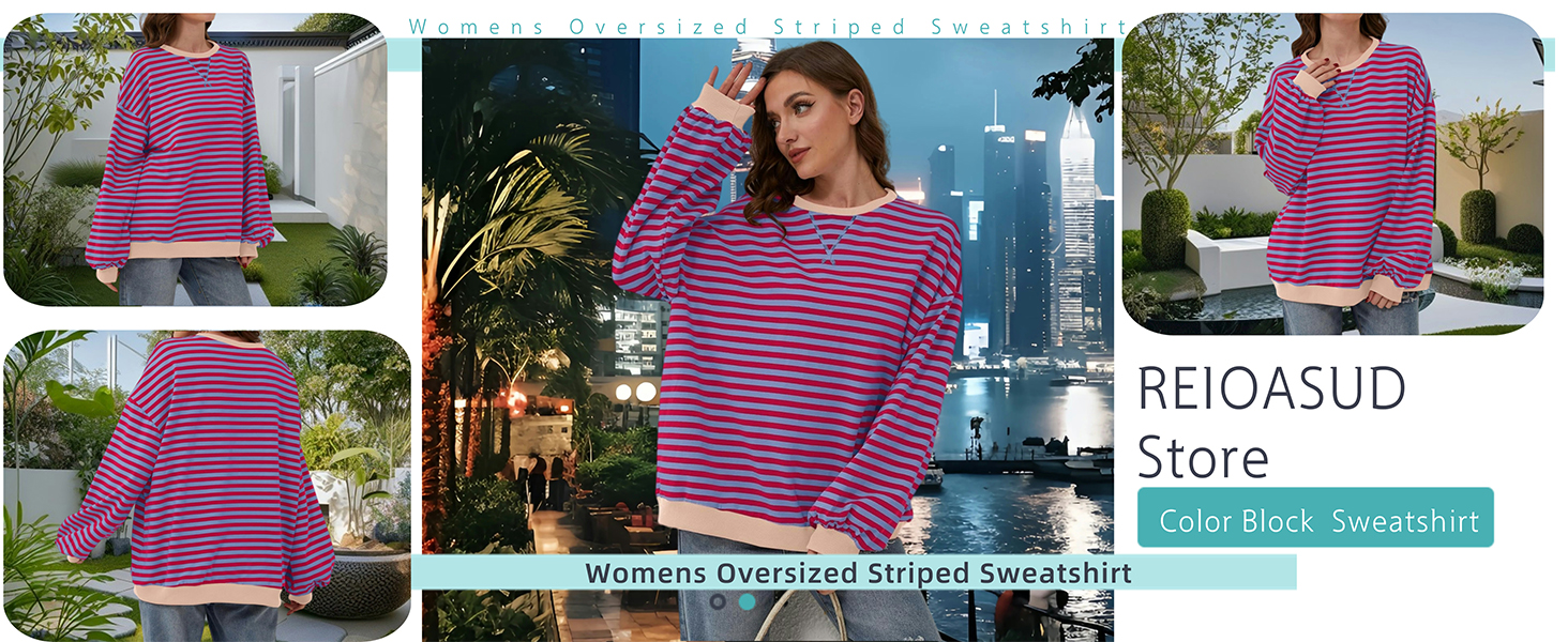 • Fabric: This striped oversized sweatshirt for women is made of high quality material, it is soft, comfy, skin-friendly and breathable, it can bring you a soft texture and feel free, offer a cozy wearing experience all day long, women long sleeve pullover tops perfect for all season.