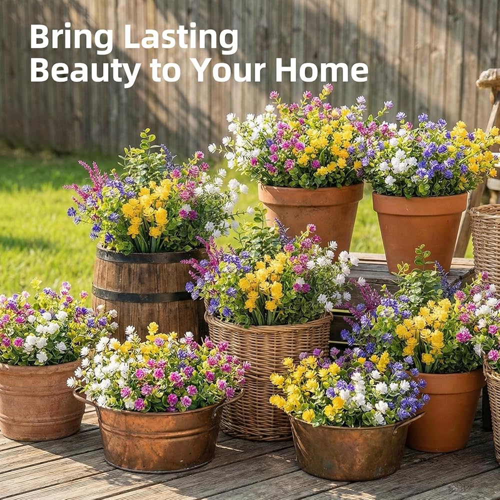 ديكور منزلي مثالي: هذه الزهور الاصطناعية الرائعة مناسبة لمجموعة متنوعة من المساحات الداخلية والخارجية، مثل الحدائق والشرفات والباحات وصناديق النوافذ والمزهريات والأواني والممرات والمداخل وأسرّة الزهور. مثالية للزينة اليومية أو الديكورات الاحتفالية، ويمكن استخدامها على مدار العام لإضافة حيوية دافئة وسحر ريفي إلى كل مساحة.