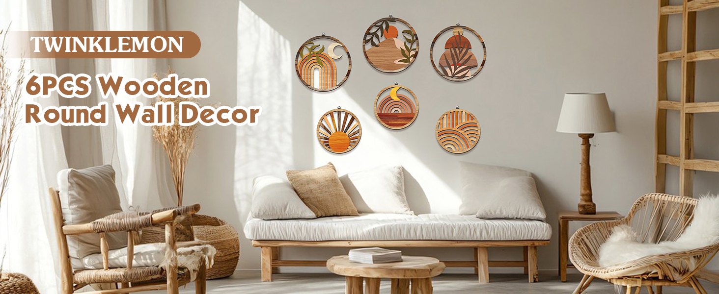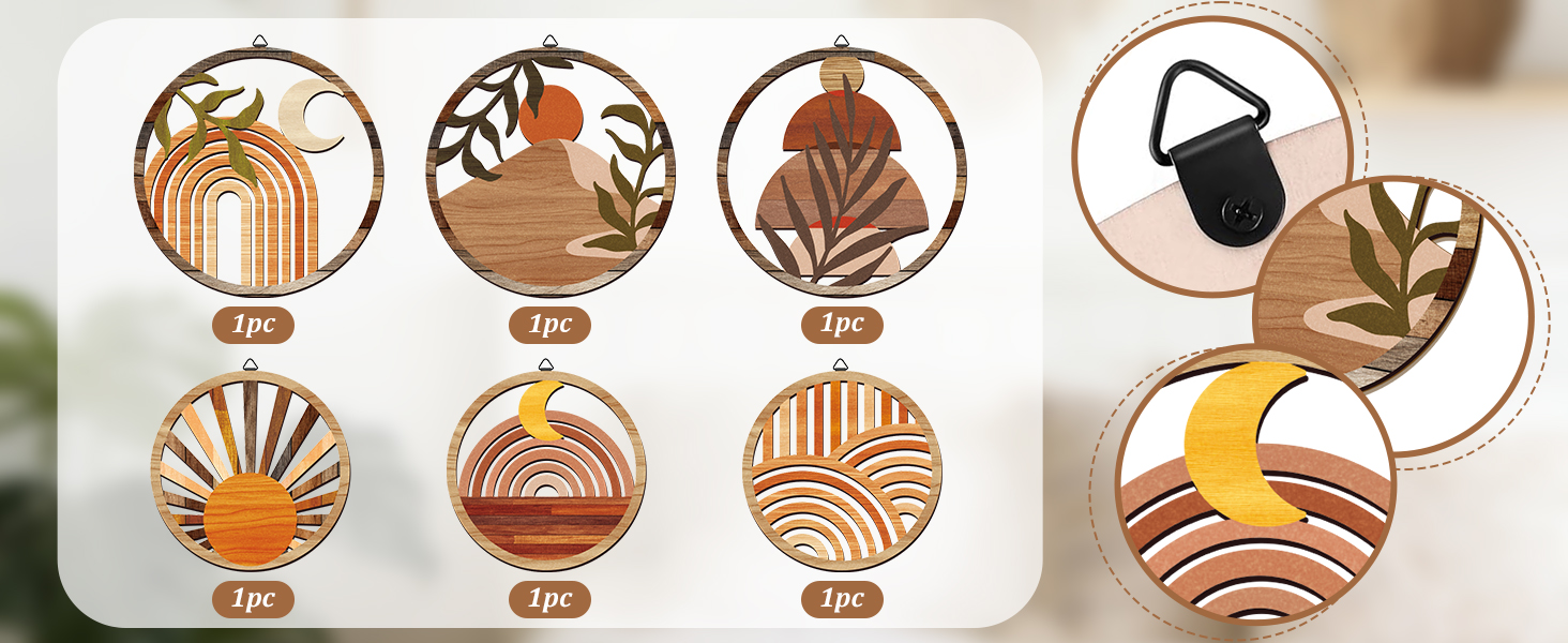 【تفاصيل المادة】ديكور الحائط الدائري مصنوع من مادة خشبية عالية الجودة مع خطاف معدني، وهو قوي وقابل للخدمة، ولا يسبب حرق يديك وليس من السهل أن يبهت أو ينكسر، ويمكن أن يخدمك لفترة طويلة.