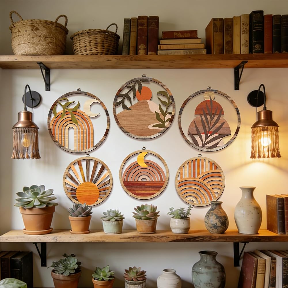 【سهولة تحويل الجدار】قم بتحويل الجدران الفارغة إلى نقاط محورية أنيقة باستخدام هذه الحلقات الخشبية خفيفة الوزن التي يسهل تعليقها وإعادة ترتيبها. إنها تضيف طابعًا مميزًا على الفور إلى غرف النوم أو الأفنية أو حتى المساحات التجارية مثل المقاهي والفنادق الصغيرة