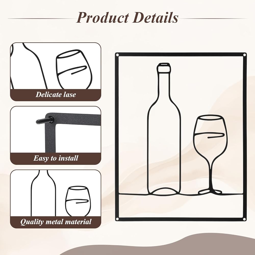 • Flexible Display Options: Arrange vertically/horizontally on walls or cabinets; cluster as a set or scatter individually across wall art for dining room area spaces - adaptable for kitchens, coffee shops, or wine cellars seeking unified decorative statements