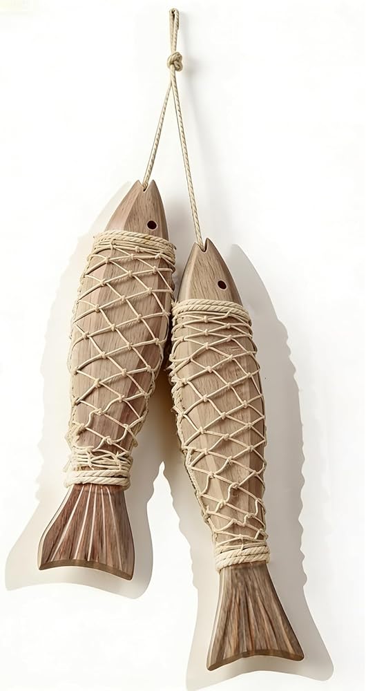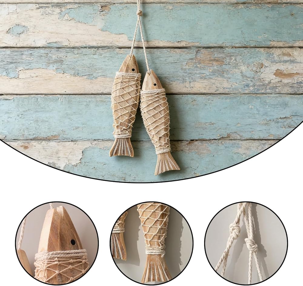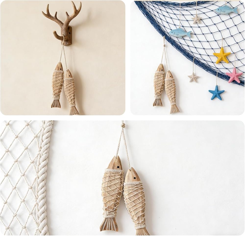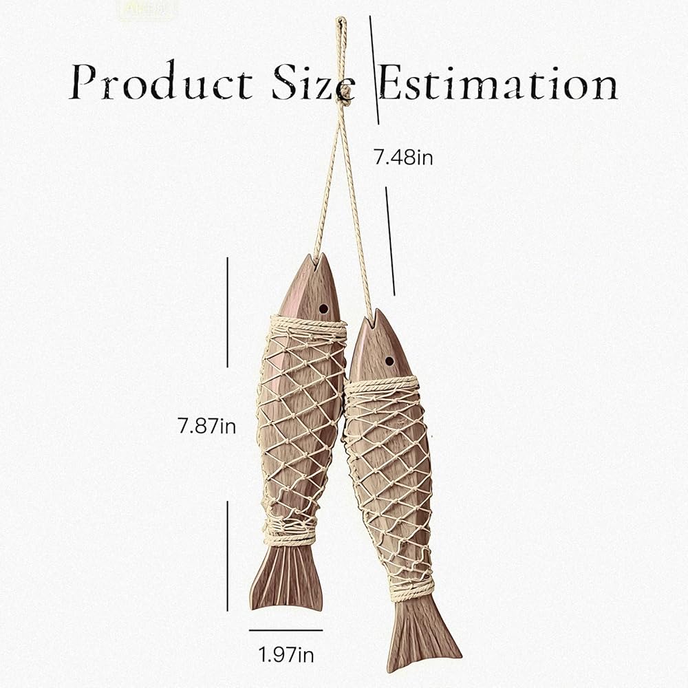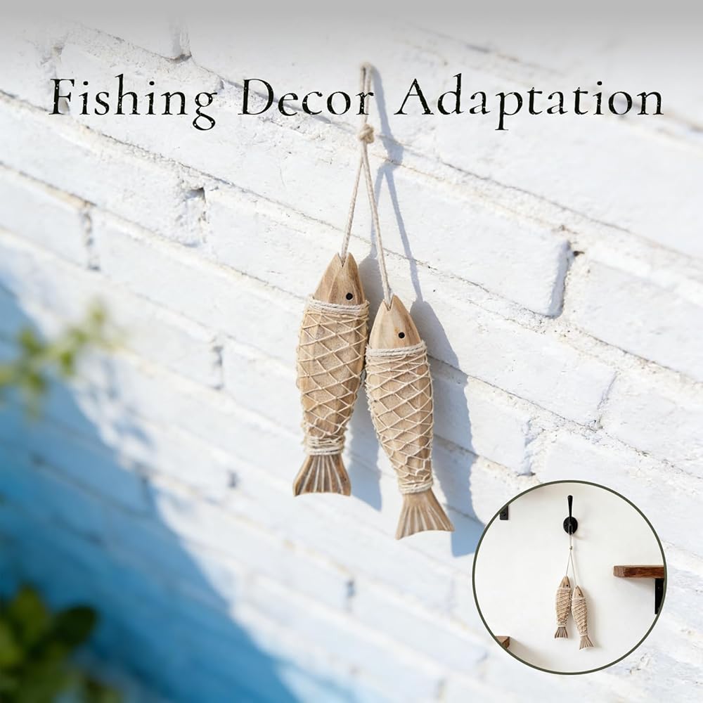 • Fish Decor Highlight:The cute shape of 2 small fish is a fun representative of fish decor. The natural vintage wood color paired with a simple knot serves as both a decorative ornament and a wall hanging, adding a lively atmosphere to the room.