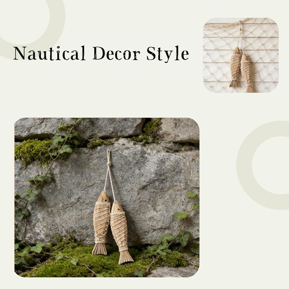 • Nautical Decor Style:With a wooden texture + fishing net wrapping design, it restores the rustic texture of seaside catches, making it a classic nautical decor piece that infuses fresh ocean vibes into your space.