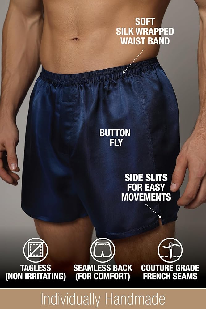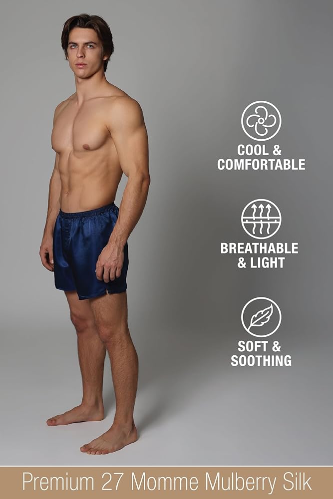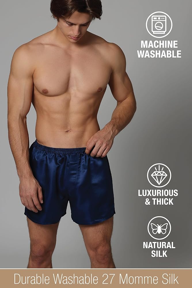 البوكسرات الحريرية الرجالية لدينا مصنوعة من حرير التوت الطبيعي 27 أمًا، مما يضمن كثافة ومتانة استثنائية. إنها توفر الراحة وتدوم طويلاً، ويمكن غسلها في الغسالة.