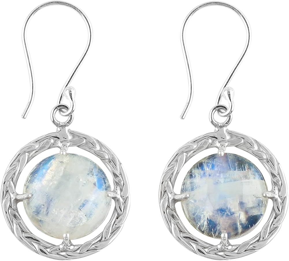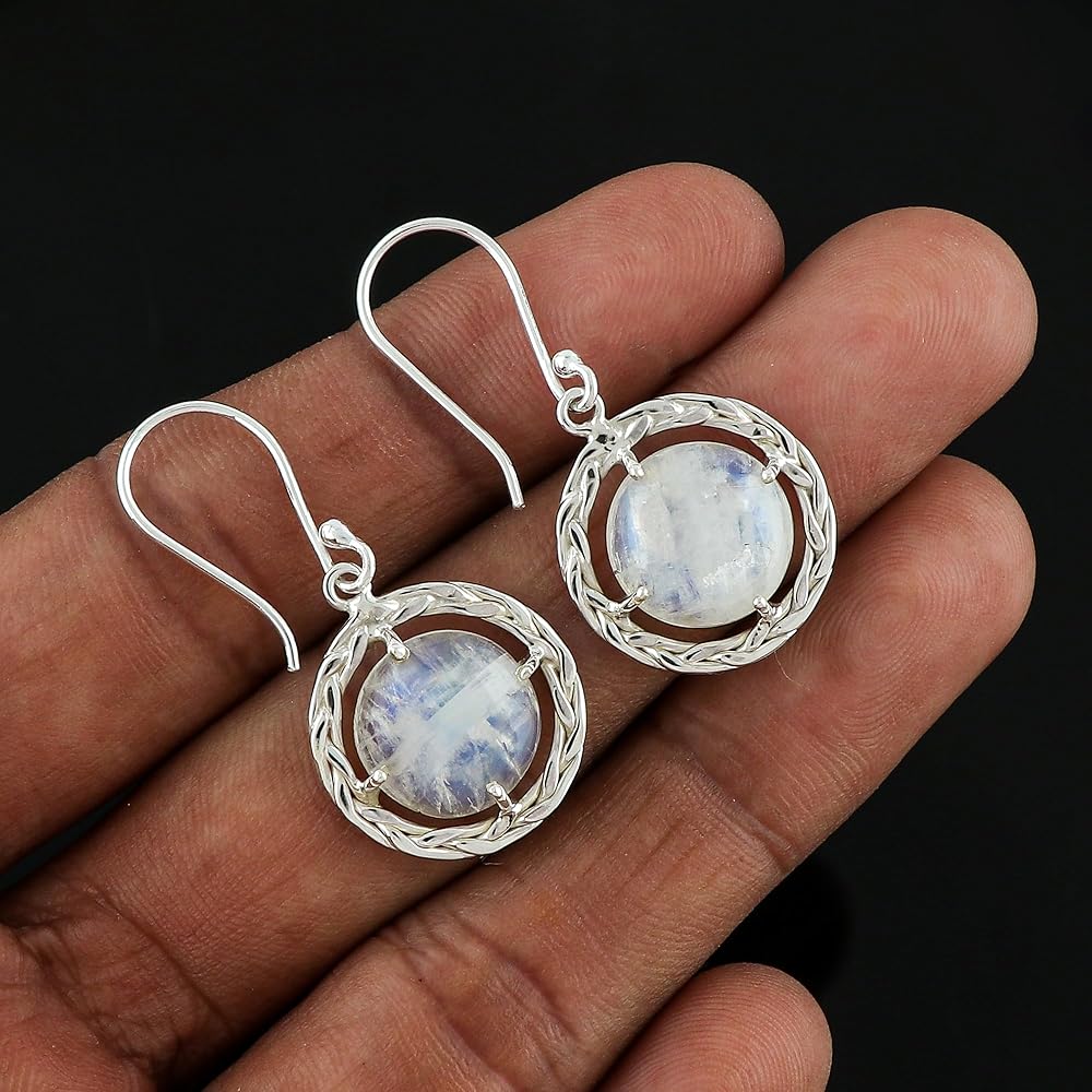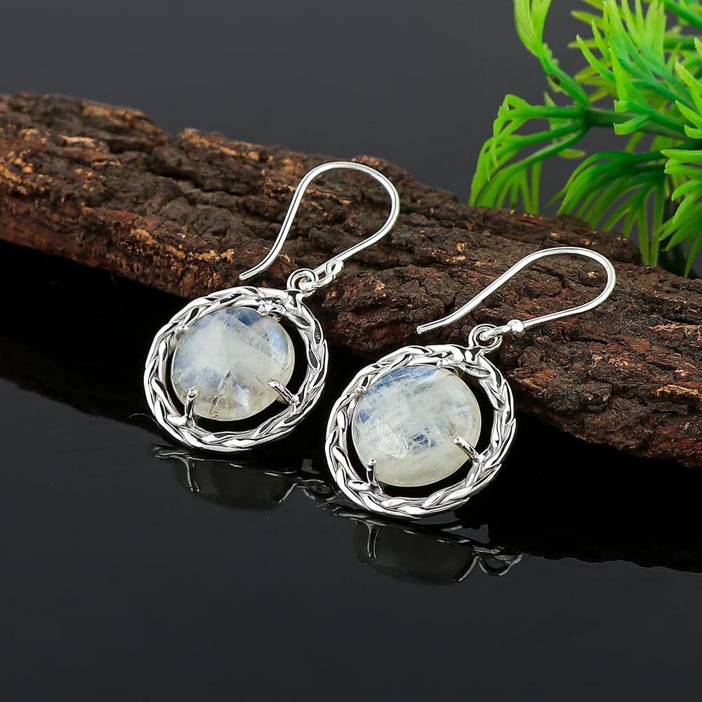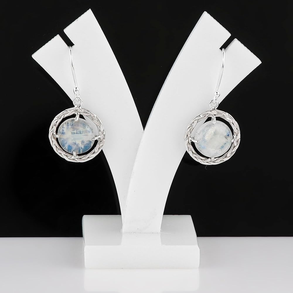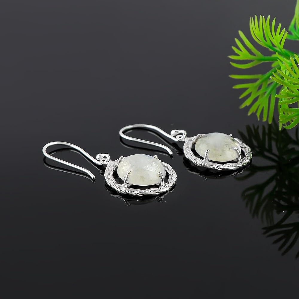 Handcrafted Earrings: These earrings are meticulously handmade with 925 sterling silver and natural rainbow moonstone gemstones.