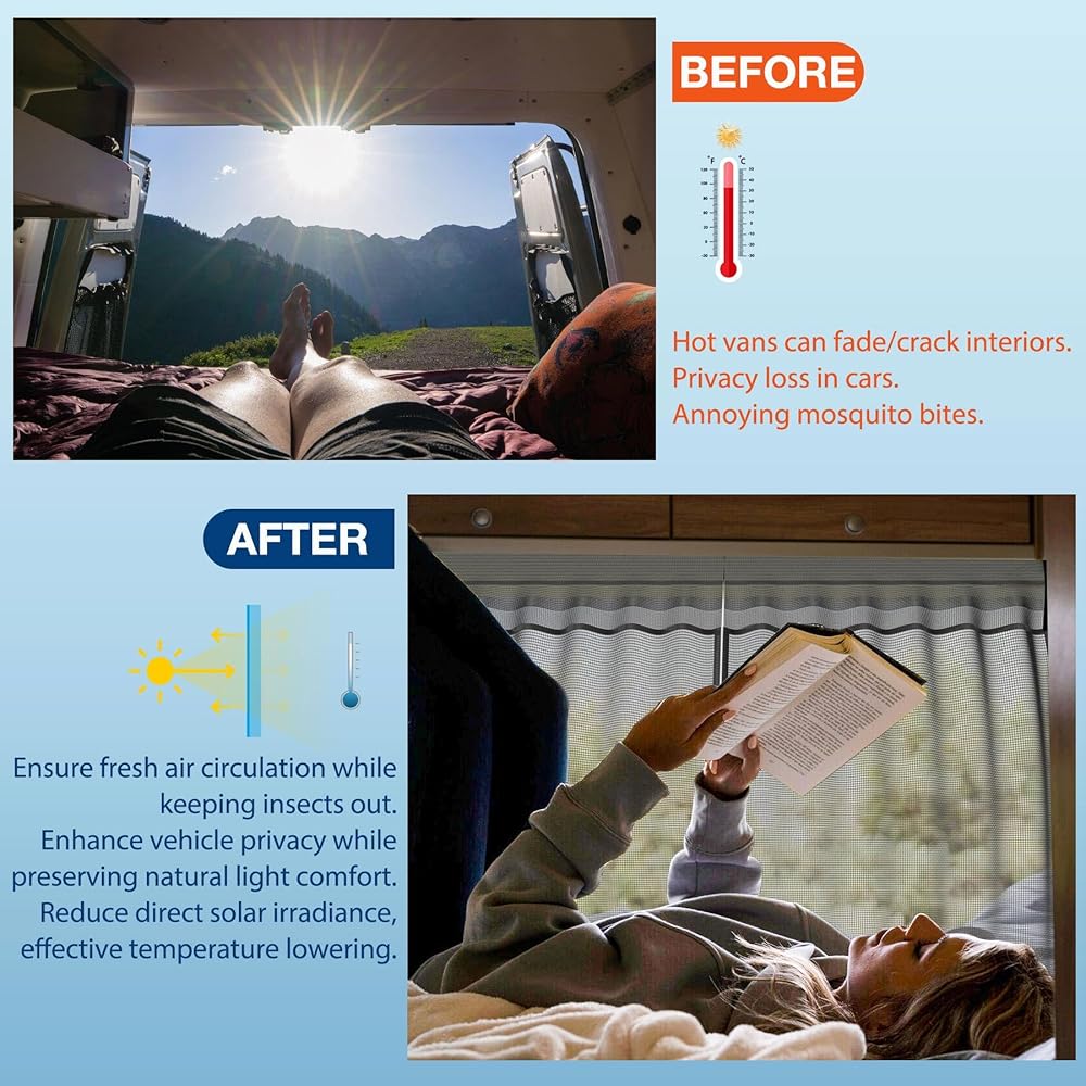 الإعداد الفوري، الوصول السريع: تتيح أدوات التثبيت المغناطيسية ذات الجوانب الأربعة التثبيت/الإزالة بدون أدوات في ثوانٍ، مما يوفر الوقت والجهد؛ مناسب لشاشة Sprinter Bug، إغلاق مغناطيسي في المنتصف يفتح على الفور ويغلق ذاتيًا، لا يوجد مصارعة مع السحابات أو الفيلكرو