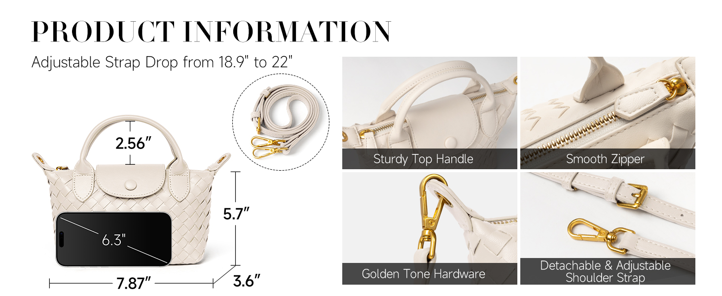 [صغير الحجم وواسع] حجم صغير، تخزين ذكي. يبلغ مقاسها 7.87 بوصة × 5.7 بوصة × 3.6 بوصة. تتميز بجيب رئيسي آمن بسحاب وجيب مسطح وجيب داخلي بسحاب. يحمل الهاتف والمحفظة والمفاتيح والنظارات الشمسية ومستحضرات التجميل - مثالي للمحافظ اليومية المنسوجة للنساء.