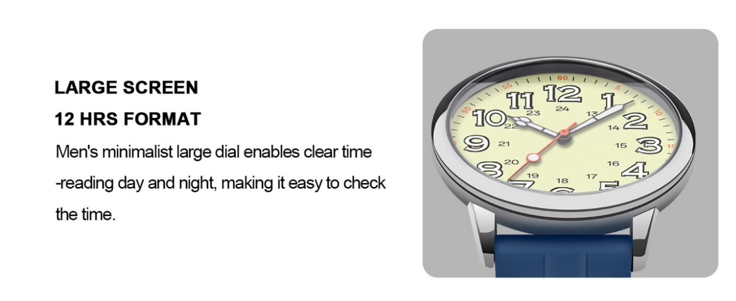 Dual silicone straps · Large face watches for men hygienic and easy to change: Includes two soft, skin-friendly, hypoallergenic silicone straps for easy replacement and cleanliness. Whether changing shifts or switching settings, you can switch styles in an instant, balancing practicality and hygiene.