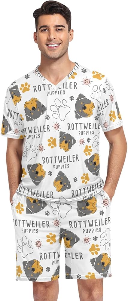 OCCASION : Mens Pajama Set designs as a classical and casual look, V-neckline short sleeve and shorts pajamas set available for all seasons.