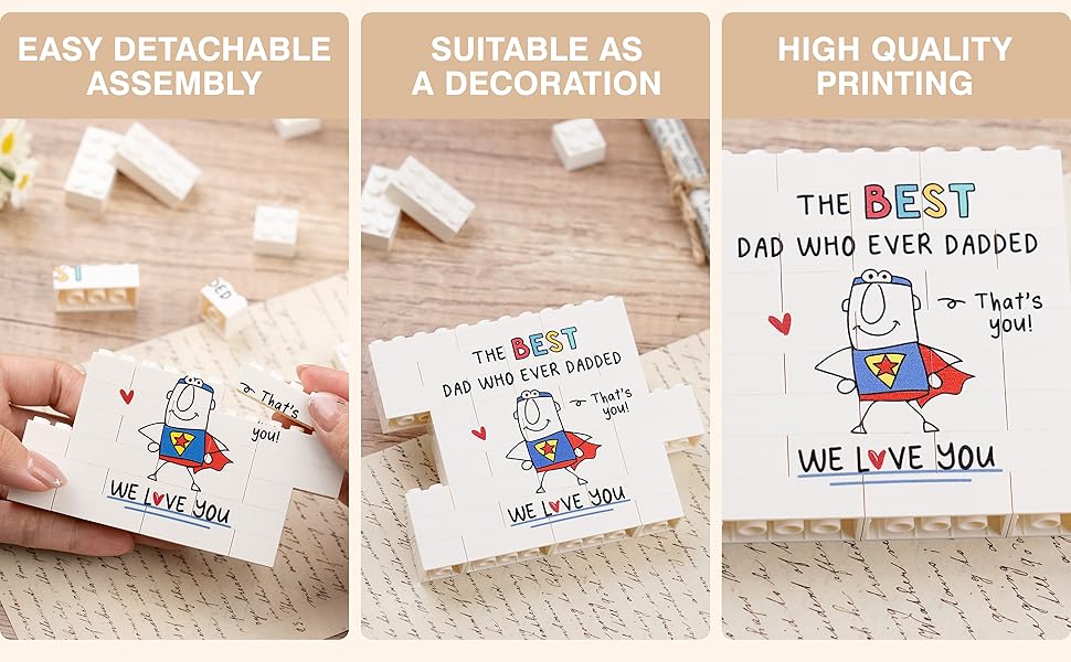 【هدية عيد ميلاد مضحكة للأب】تُعد اللوحة المجمعة مسبقًا بمثابة هدية فريدة من نوعها لعيد ميلاد الأب، مما يوفر تجربة ممتعة. يمكنك الاحتفاظ بها مجمعة، أو تفكيكها والسماح لوالدك بإعادة بنائها، مما يكشف عن رسالة مضحكة. هدية عيد ميلاد فريدة للأب تعبر عن امتنانك وعبادتك، وتحتفل بأفضل والد لك يتمتع بقدرات سوبرمان. أبي هو الحامي البطولي للعائلة طوال الوقت