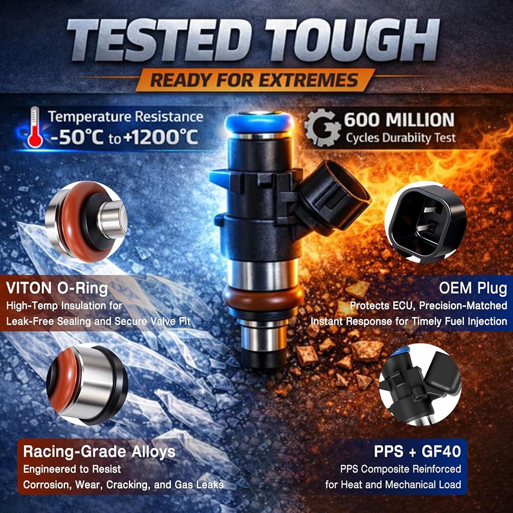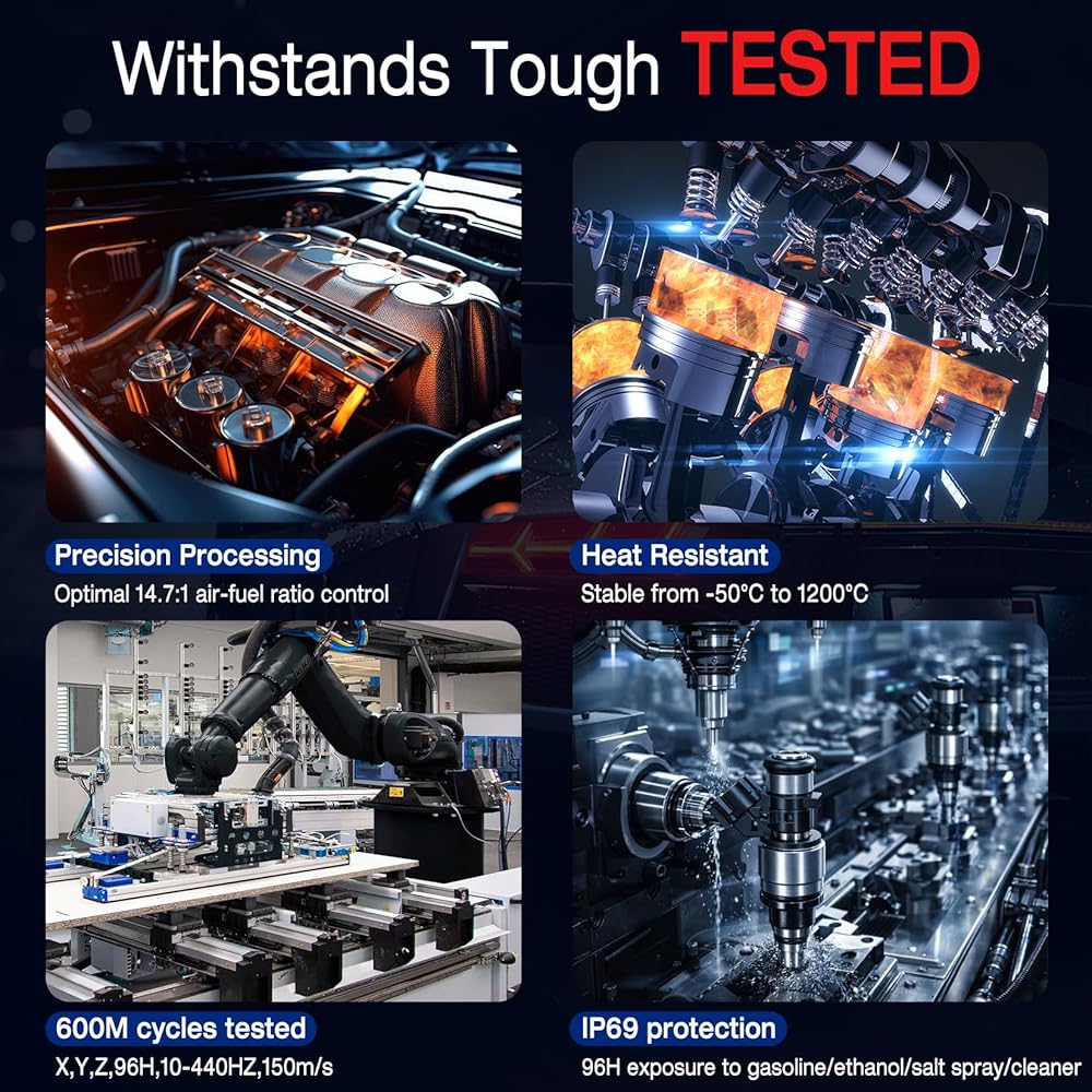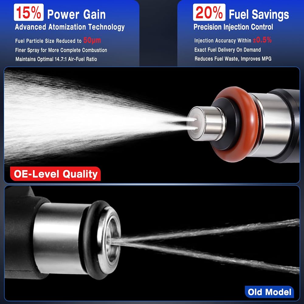 [زيادة الطاقة بنسبة تصل إلى 30%] توفر فتحات الحقن المثقوبة بالليزر رش رذاذ فائق الدقة لاحتراق الوقود بشكل أكثر اكتمالاً. يعمل على تحسين استجابة الخانق وكفاءة استهلاك الوقود مع توفير ما يصل إلى 30% زيادة في قوة المحرك في ظل الظروف المثالية. يتم اختبار كل وحدة قبل الشحن لضمان التشغيل المستقر