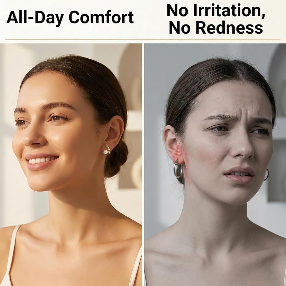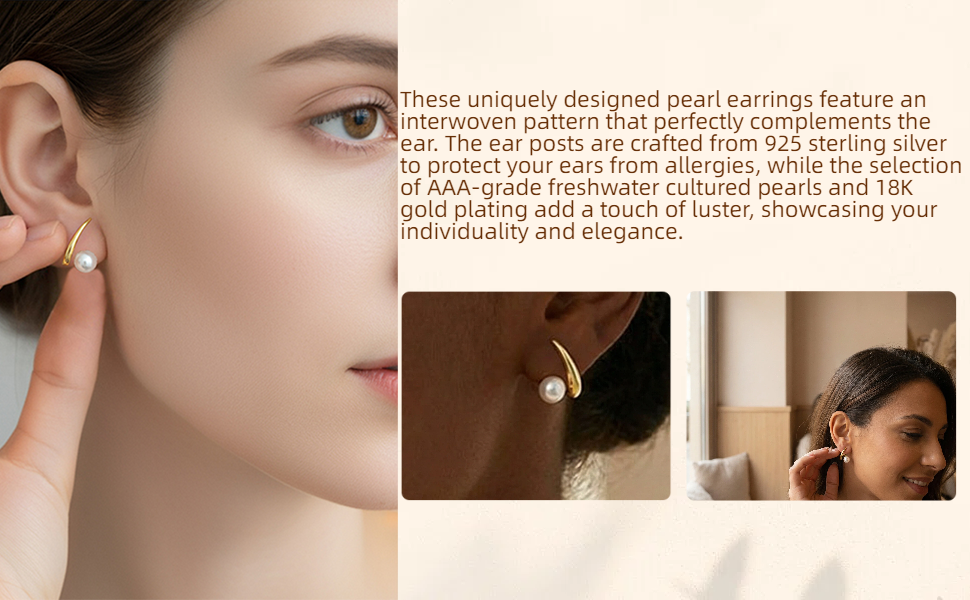 مواد فاخرة: نستخدم إبر فضية 925 ونحاس مطلي بالذهب عيار 18 قيراط. اللآلئ هي لآلئ مثقفة، مما يضمن أنها لن تتلاشى مع مرور الوقت. فهي خالية من النيكل والرصاص وأقل عرضة للتسبب في الحساسية. بالمقارنة مع الفولاذ المقاوم للصدأ 316، فهي أكثر ملاءمة للأذنين الحساسة.