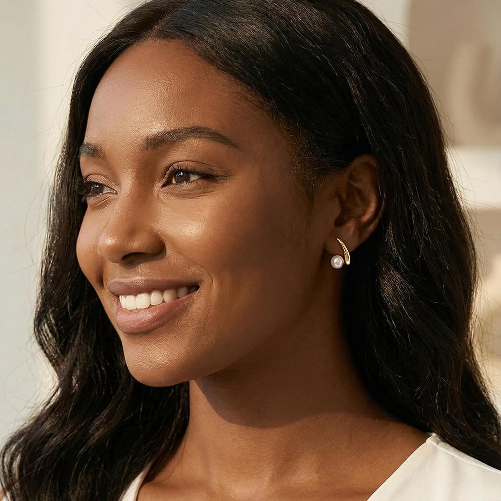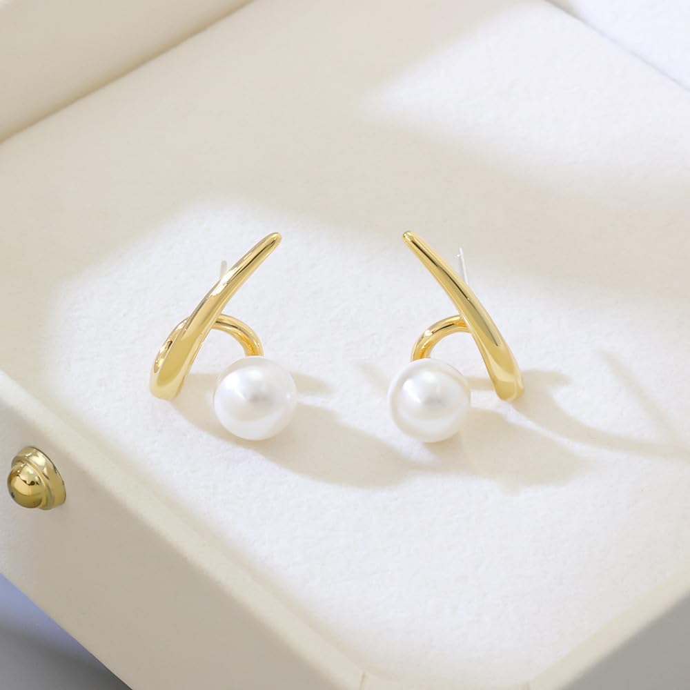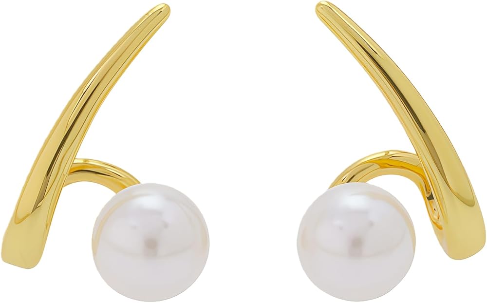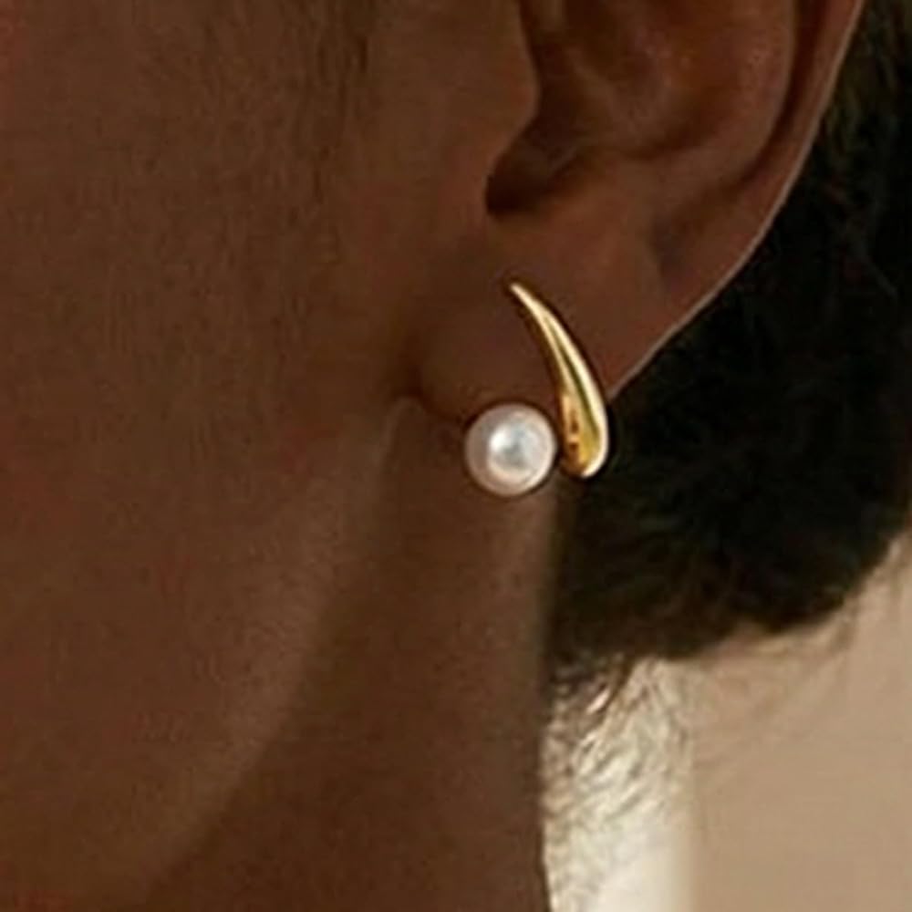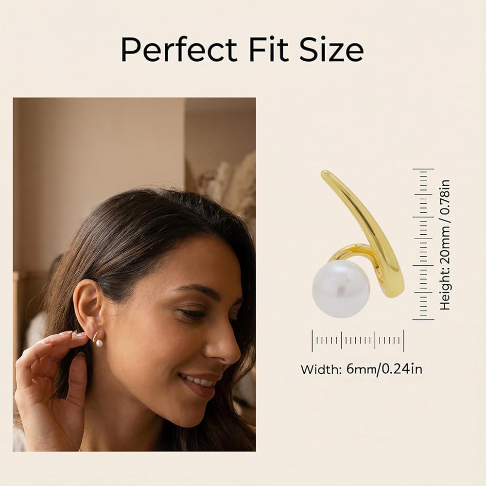 تصميم القرط: هذه الأقراط الذهبية مصنوعة باستخدام عملية طلاء الذهب عيار 18 قيراط. تبدو هذه المجوهرات رقيقة وصغيرة الحجم ومزينة بلآلئ متوسطة الحجم. يمكنك ارتدائها بمفردها أو مع أقراط أخرى.