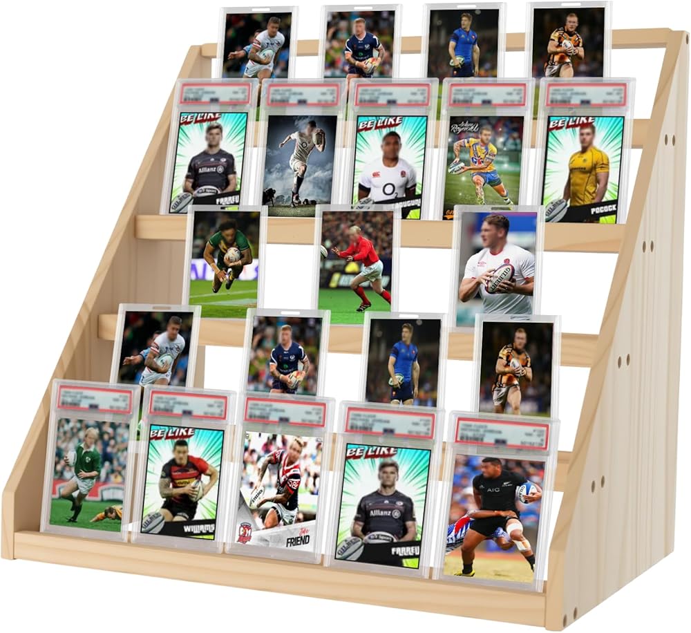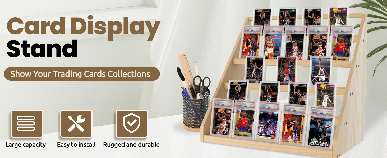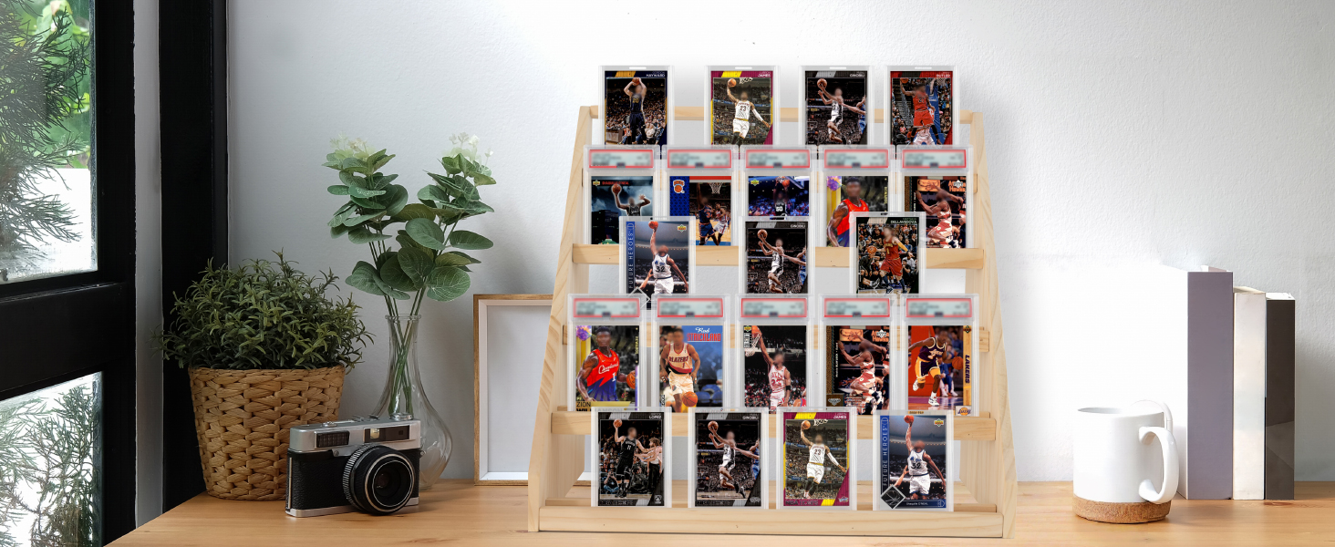 حامل عرض خشبي سهل الوصول إليه: مصنوع من الخشب الصلب، ويتميز هذا الحامل بتصميم مفتوح من الأمام للوصول بسهولة إلى البطاقة مع الحفاظ على مجموعتك منظمة