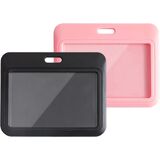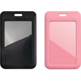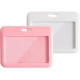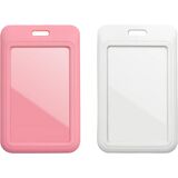 Lanyardio 2 Pack ID Badge Holder, White and Pink ID Card Holder, Horizontal Sliding Plastic Key Card Holder for Office, School, Factory, Teachers & Students