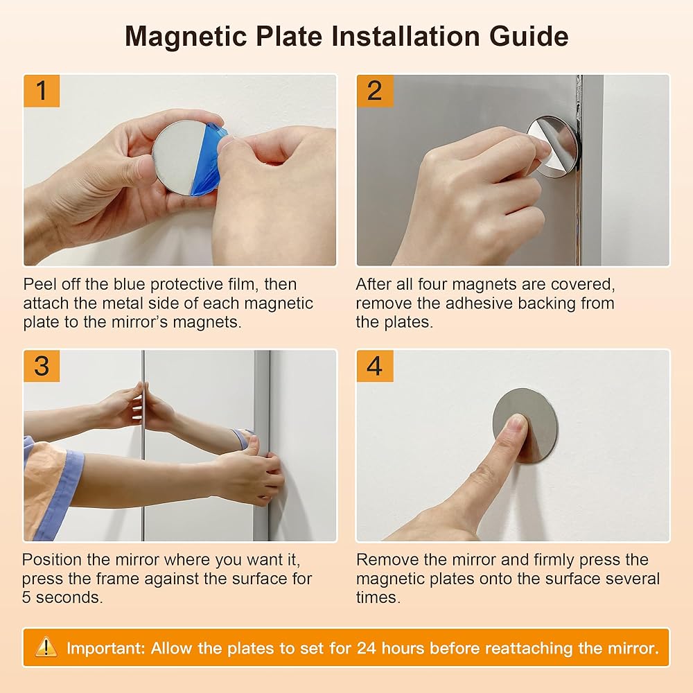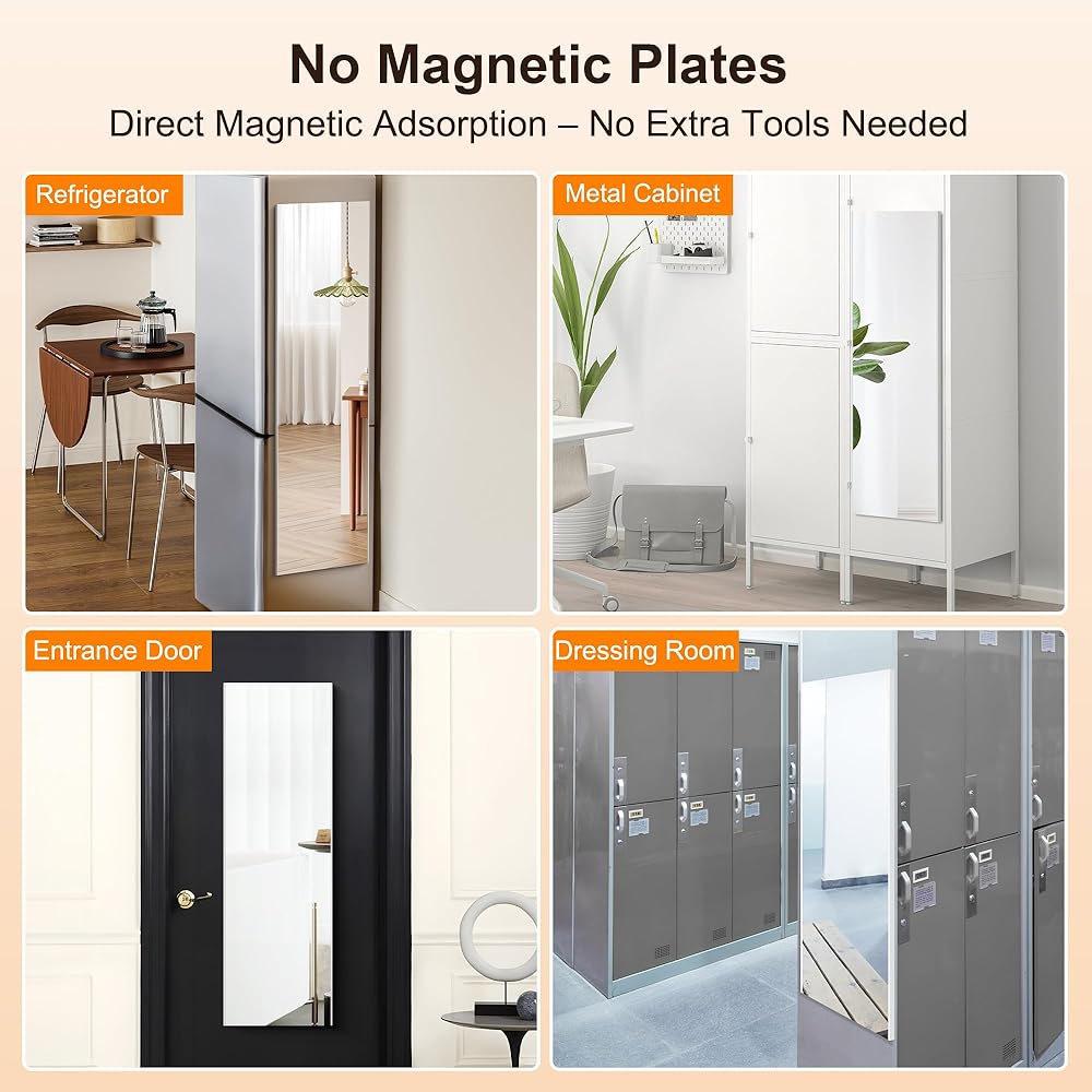 Tool-Free Magnetic Installation: No drills, no damage, no hassle. Built-in strong magnets allow you to mount the mirror directly onto metal surfaces like doors, lockers, or wardrobes in seconds. A renter-friendly and reusable solution.