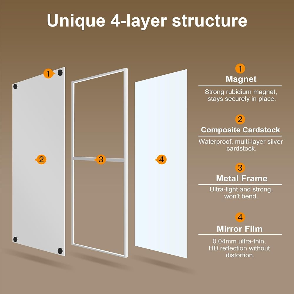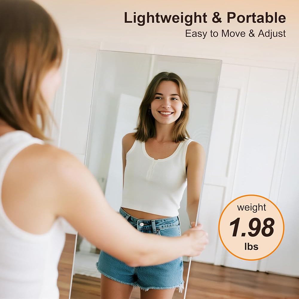 Ultra-Lightweight & Safe Nano Material:Crafted from advanced shatterproof nano glass, this full-length mirror is ultra-light and impact-resistant—perfect for households with kids or pets. No risk of dangerous glass shards, only peace of mind.