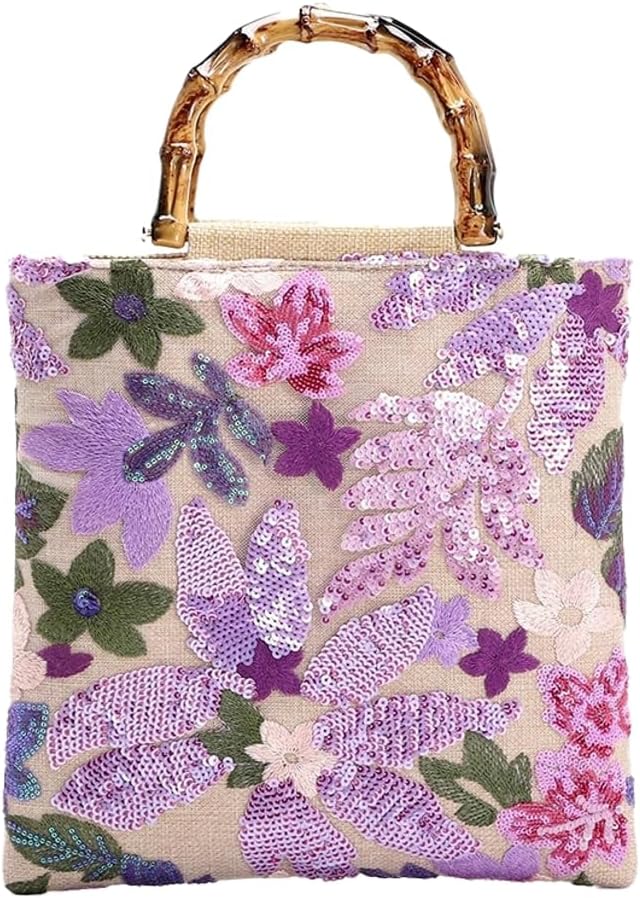 【Exquisite Embellishments] Adorned with a vibrant mix of sequined and embroidered floral and leaf patterns in lively hues like yellow, pink, purple, and blue, creating a visually - striking and eye - catching design that stands out from ordinary bags