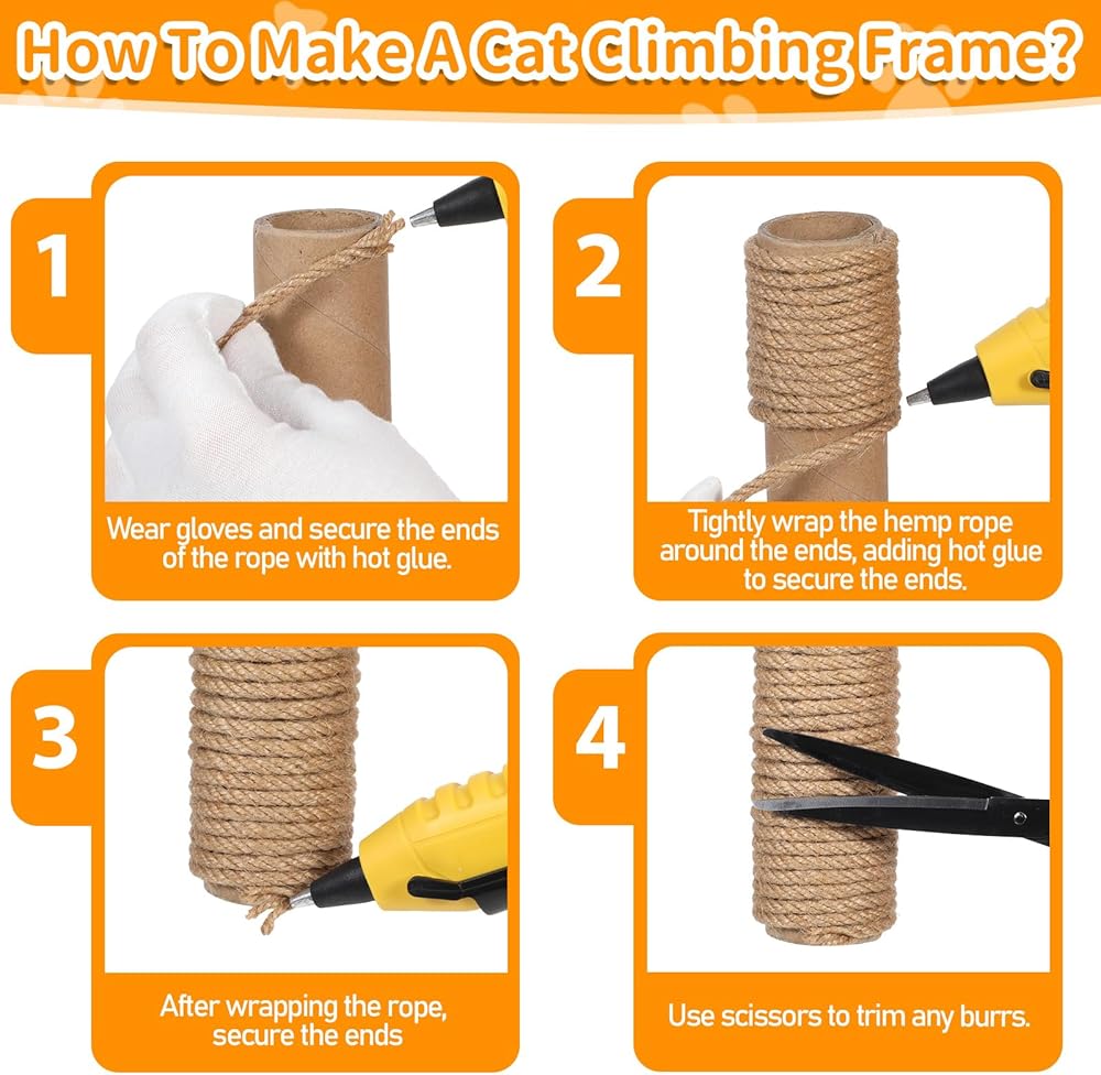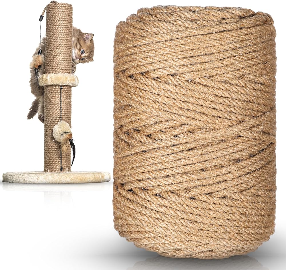 Anti-cat scratching post: The natural sisal jute rope is 656 feet (about 190 meters) long, enough to repair the worn cat scratching post, make it look brand new, and provide a space for cats to sharpen their claws. It can also be wrapped around the legs of furniture to replace the furniture surface and prevent furniture from being scratched