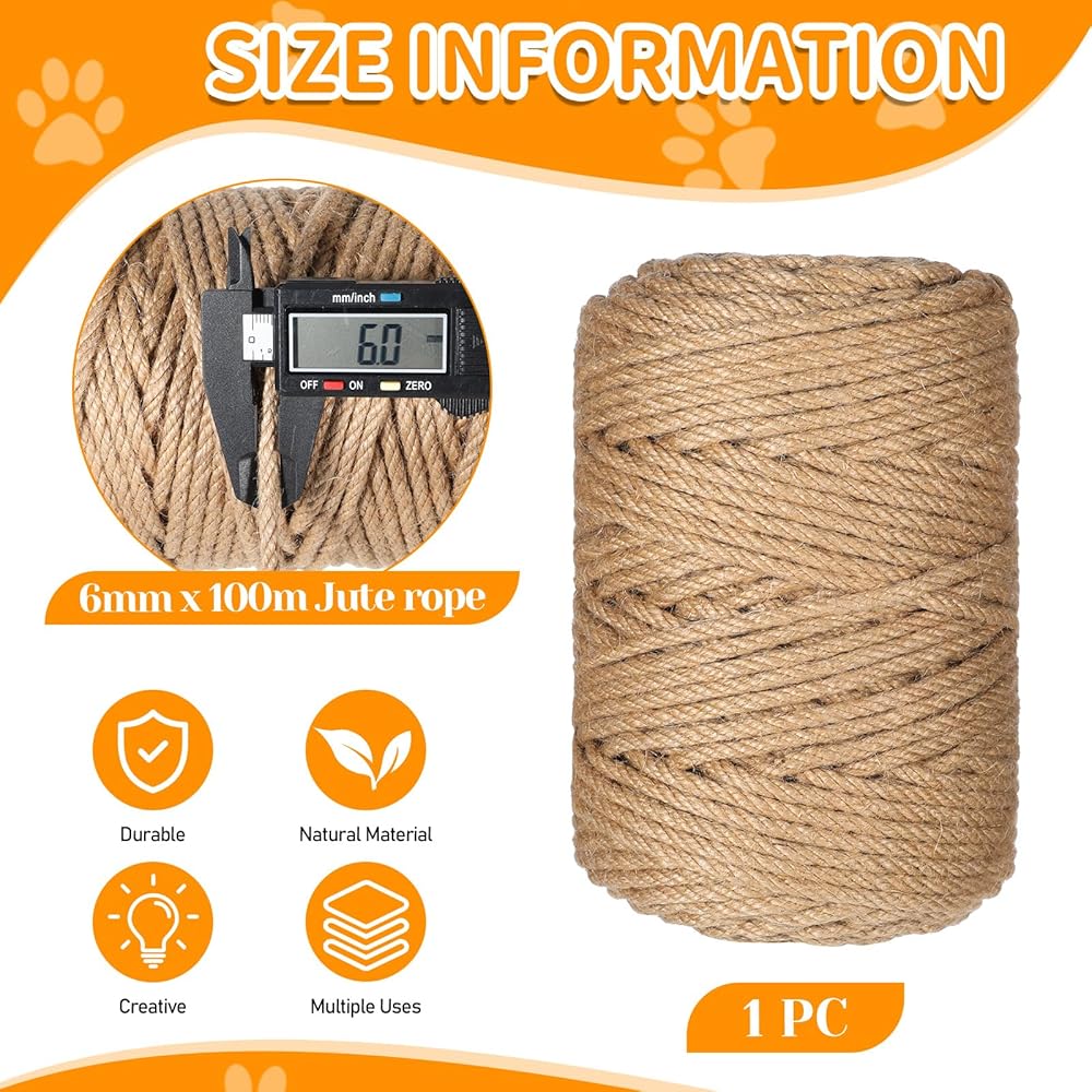 Package Includes: You will receive a roll of jute twine. This 1/4-inch (6mm) diameter jute twine measures 328 feet (100 meters) in length. This ample length is sufficient for daily use and subsequent replacements, eliminating the need for frequent reorders and making it easy to share with family and friends