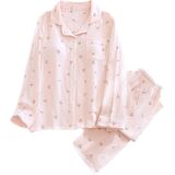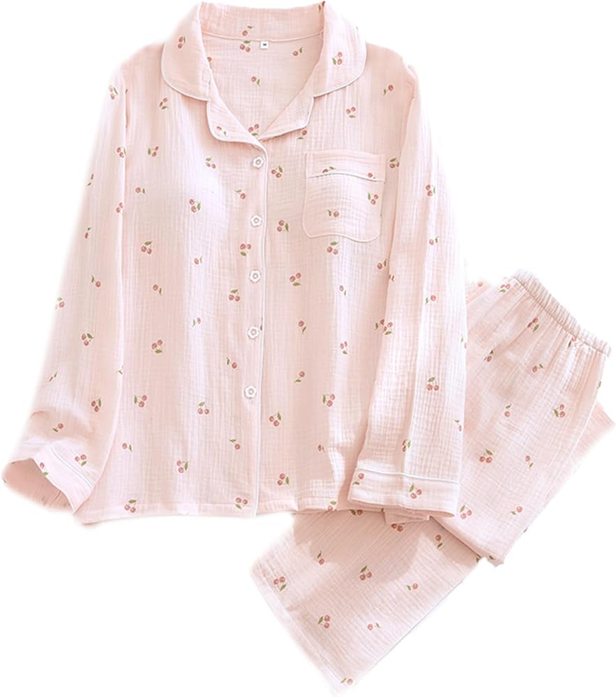 💮 DESIGN – Features notch collar, long sleeve, Built-in Bra, button down, perfect for chilly nights. The sweet pastel pink base with mini cherry prints adds a touch of femininity and cuteness. The classic button-down shirt allows easy wear and removal, while the elastic waistband ensures a flexible, comfortable fit for relaxing at home
