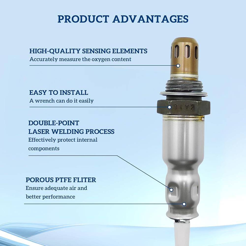 • تم اختبار المنتج: خضعت أجهزة استشعار O2 لاختبارات مكثفة وسوف تكتشف بدقة خليط الهواء والوقود، وتساعد على ضمان تشغيل المحرك بكفاءة، مع زيادة الأداء إلى أقصى حد.