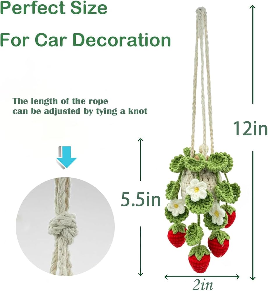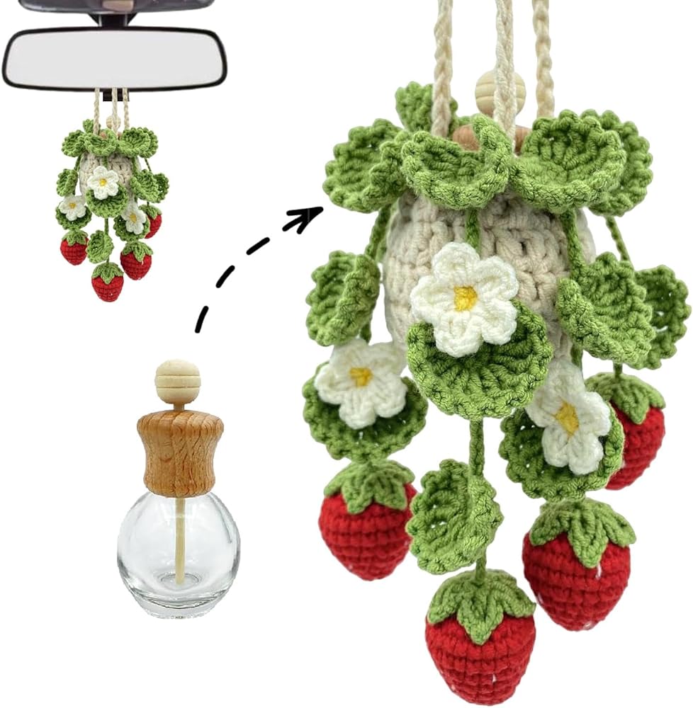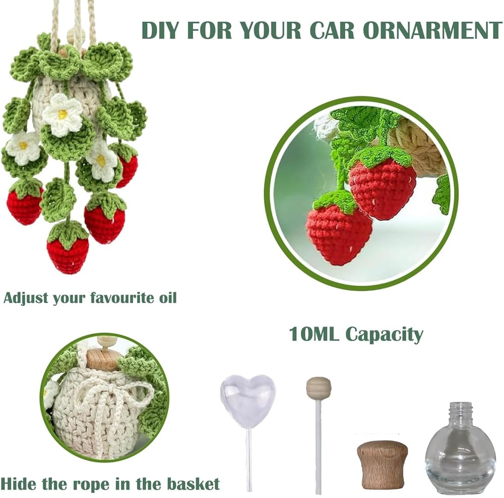 • - Handmade Quality:Each Crochet Car Hanging ornament is meticulously handcrafted using double-layer cotton yarn, ensuring both a delightful appearance and a protective design for your essential oil bottle.