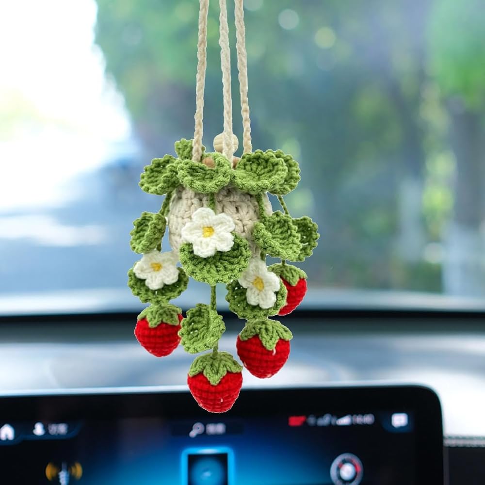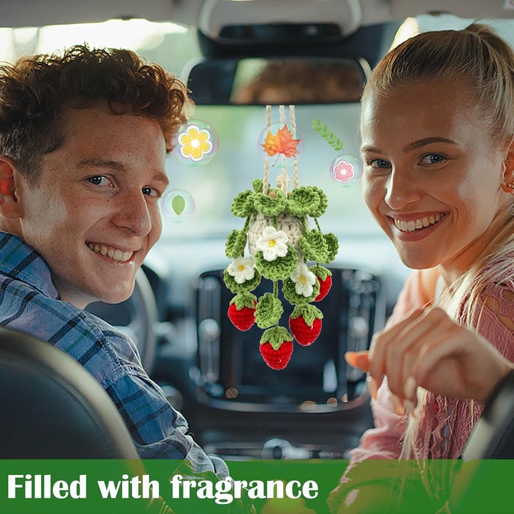 MENGSING Crochet Car Air Freshener Elevate your driving experience with our Crochet Car Air Freshener, a unique blend of charm and functionality. This delightful hanging decoration features an adorable plant-inspired design, seamlessly merging a fragrant pouch with an essential oil bottle. Crafted from double-layer cotton yarn, each air freshener is meticulously handmade, ensuring durability and safety throughout its use. The crochet plant design not only enhances its aesthetic appeal but also protects the essential oil bottle, safeguarding your vehicle from potential damage. Customize your driving ambiance by adding your favorite essential oils, allowing you to create a signature scent that reflects your personal taste. Perfect for car mirrors, this hanging decor piece is the ideal solution for those who appreciate both style and a refreshing aroma on the road.