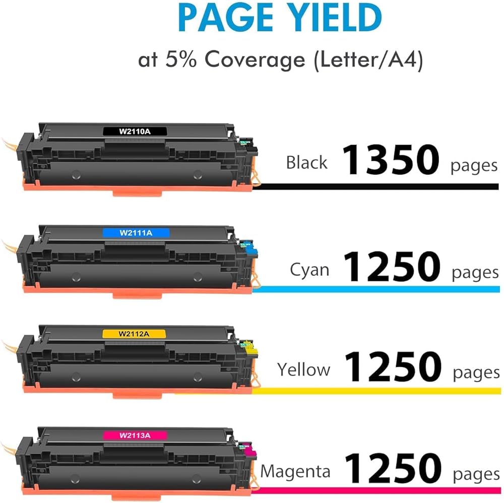 - إنتاجية الصفحة: ما يصل إلى 1,350 صفحة لـ 206A باللون الأسود و1,250 صفحة لكل 206A لون (Letter/A4، بتغطية 5%)