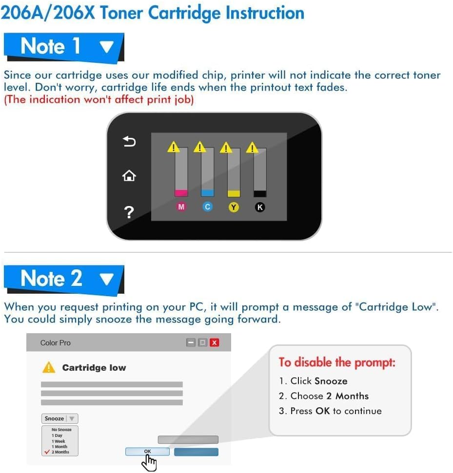 - مع رقاقة: بديل متوافق مع FIREINK لخراطيش حبر HP 206A 4 عبوات عالية الإنتاج تحتوي على الرقائق، لا حاجة لإزالتها وتثبيتها
