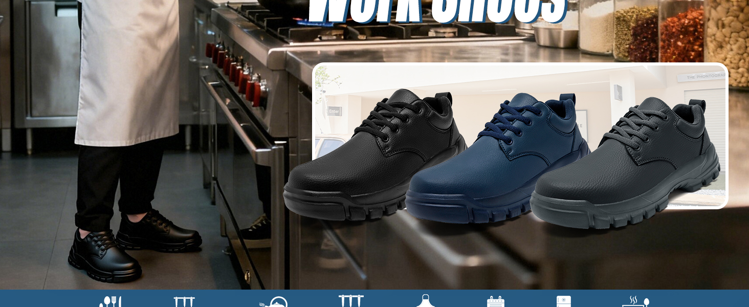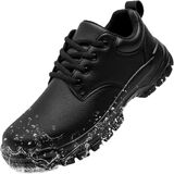 Slip-Resistant Sole for Stable Footing: These non slip work shoes for men feature a specially designed sole that offers exceptional traction on slippery and greasy surfaces. Whether you're walking on smooth kitchen floors or wet restaurant surfaces, you can rely on these shoes to provide stable footing, reducing the risk of slips and falls.