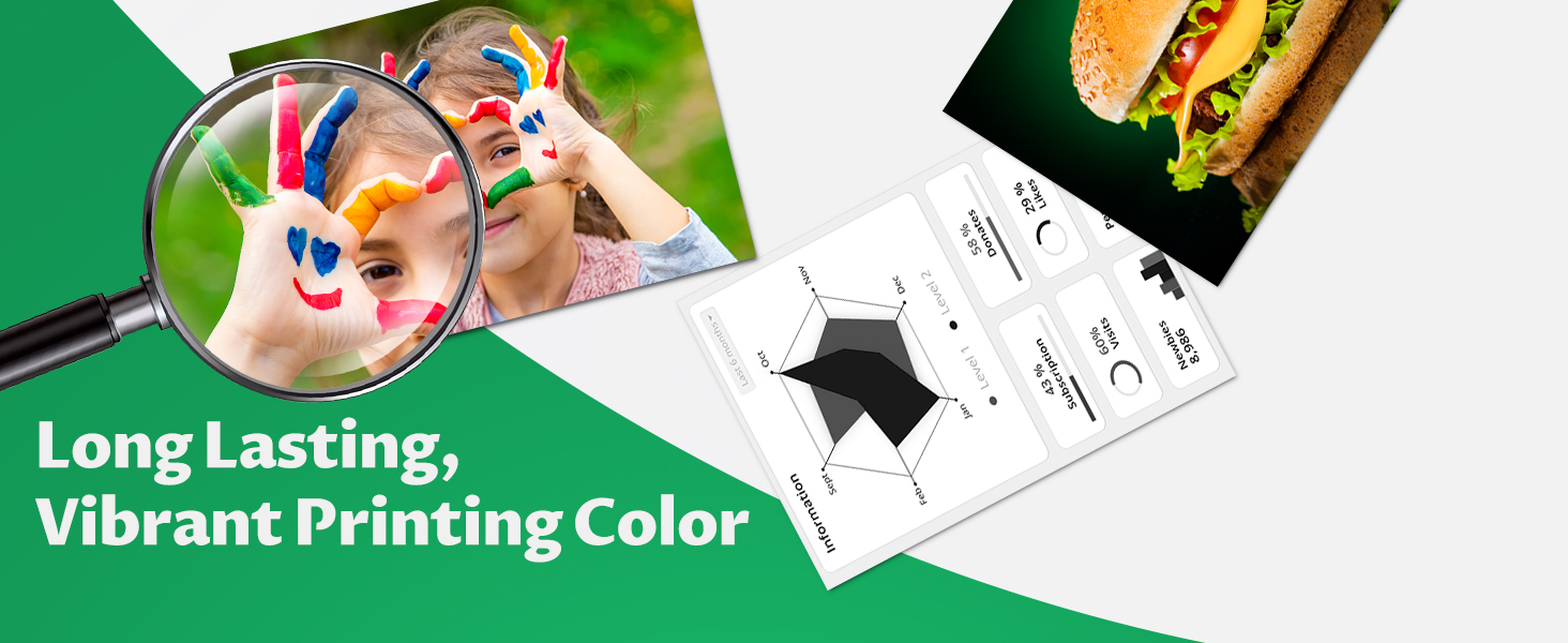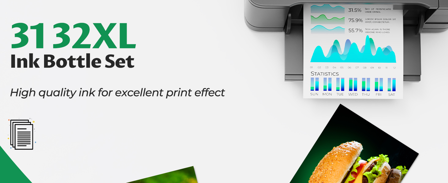 إنتاجية أعلى للصفحة: يصل إنتاج الصفحة لإعادة تعبئة زجاجة الحبر الأسود مقاس 32xl إلى 9500 صفحة، وزجاجة الحبر السماوي 31 تصل إلى 9000 صفحة، والحبر الأرجواني 31 يصل إلى 9000 صفحة، وزجاجة إعادة تعبئة الحبر الأصفر 31 تصل إلى 9000 صفحة، بتغطية 5% على ورق A4.