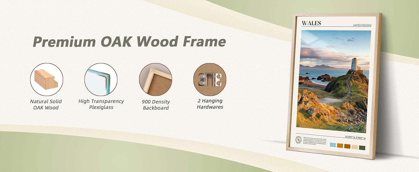 • هيكل ممتاز: مصنوعة من خشب البلوط الحقيقي مع لمسة نهائية طبيعية، تضيف هذه الإطارات الدفء والرقي إلى أي ديكور، وتوفر متانة فائقة وأسلوبًا لا يتأثر بمرور الزمن.