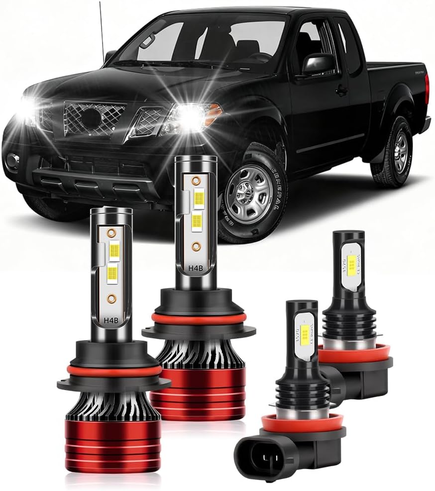 إعداد المنتج وتفاصيل العبوة: الإعداد لـ 2005 2006 2007 2008 2009 2010 2011 2012 2013 2014 2015 2016 2017 2018 2019 Nissan Frontier؛ تتضمن العبوة 4 قطع من مصابيح الإضاءة: قطعتان من الشعاع المنخفض و2 قطعة من مصابيح الضباب المصابيح. باستخدام شريحة CSP 3570 من الجيل الجديد، يحقق هذا الحل كفاءة تشغيلية أسرع وأكثر قوة بشكل ملحوظ