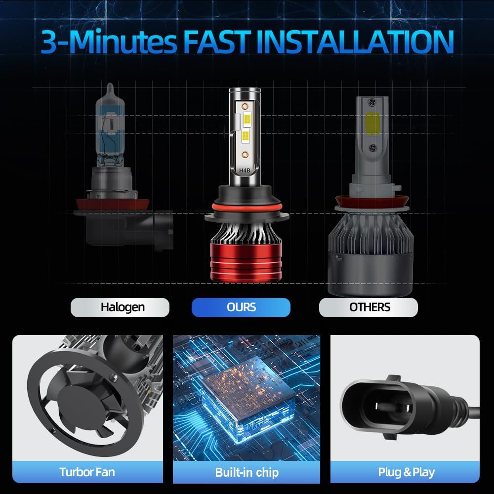 أكثر توافقًا، تركيب لمدة 3 دقائق: تم تصميم Canbus للسائق الذكي لمصابيحنا وفقًا لبيانات السيارة الأصلية التي يمكن أن تتوافق مع 99% من المركبات؛ فقط استبدال مباشر لمصابيح المصنع في سيارتك، استمتع بسطوع فائق دون تعديل. بالنسبة لعدد قليل من المركبات الحساسة، قد تكون هناك حاجة إلى أجهزة فك التشفير. إذا واجهت أي مشاكل، فلا تتردد في الاتصال بنا