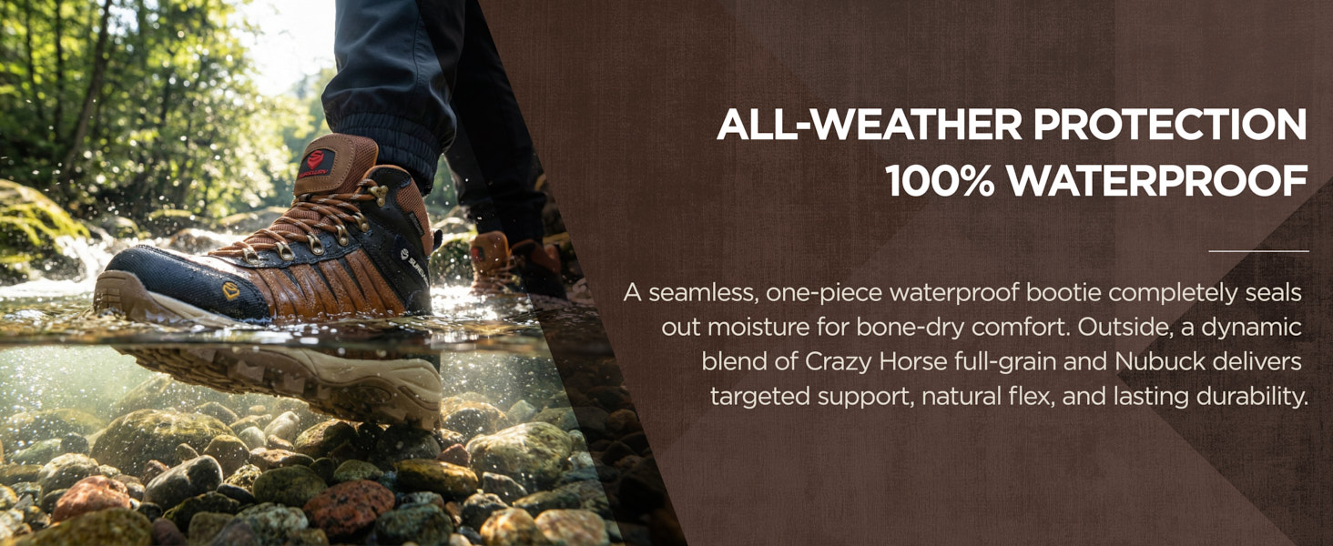 【تقنية متقدمة مقاومة للماء وقابلة للتنفس】حافظ على قدميك جافة في أي طقس. تتميز هذه الأحذية بغشاء مقاوم للماء عالي الأداء وبنية محكمة الغلق، مما يخلق حاجزًا لا يمكن اختراقه ضد المطر والطين والطين. تم تصميم البطانة الداخلية لطرد العرق والرطوبة، مما يضمن بقاء قدميك باردتين ومرتاحتين أثناء العمل البدني المكثف أو الرحلات الطويلة في الغابة.