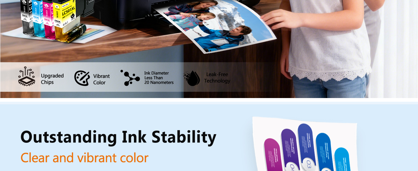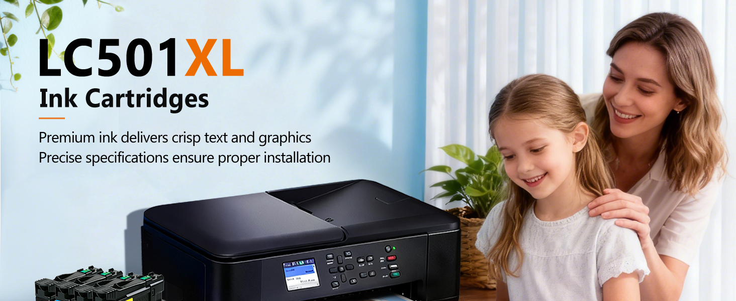 • عدد الصفحات: توفر خراطيش الحبر LC501XL LC 501XL ما يصل إلى 500 صفحة لكل خرطوشة حبر LC501xlbk، و500 صفحة لكل خراطيش حبر ملونة LC501xlcmy (بتغطية 5% من ورق A4)