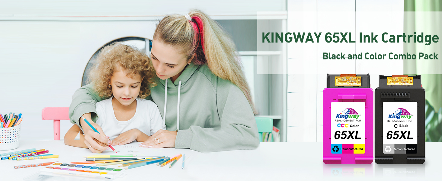 خرطوشة حبر KINGWAY 65XL باللون الأسود واللون مجموعة بديلة لخراطيش الحبر HP 65 65XL تعمل لطابعات HP DeskJet 3755 3772 3700 3752 3722 2600 2622 Envy 5055 5000 5070 5052 (عبوتان)