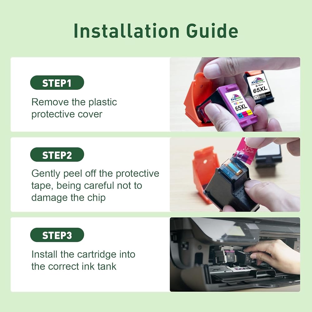 جودة طباعة موثوقة: مجهزة بشريحة ذكية مطورة تضمن توافق العمل الكامل مع الطابعة الخاصة بك. يتم اختبار كل خرطوشة حبر طابعة 65XL بدقة مع عمليات مراقبة الجودة الصناعية لتمنحك تجربة طباعة نابضة بالحياة ونقية