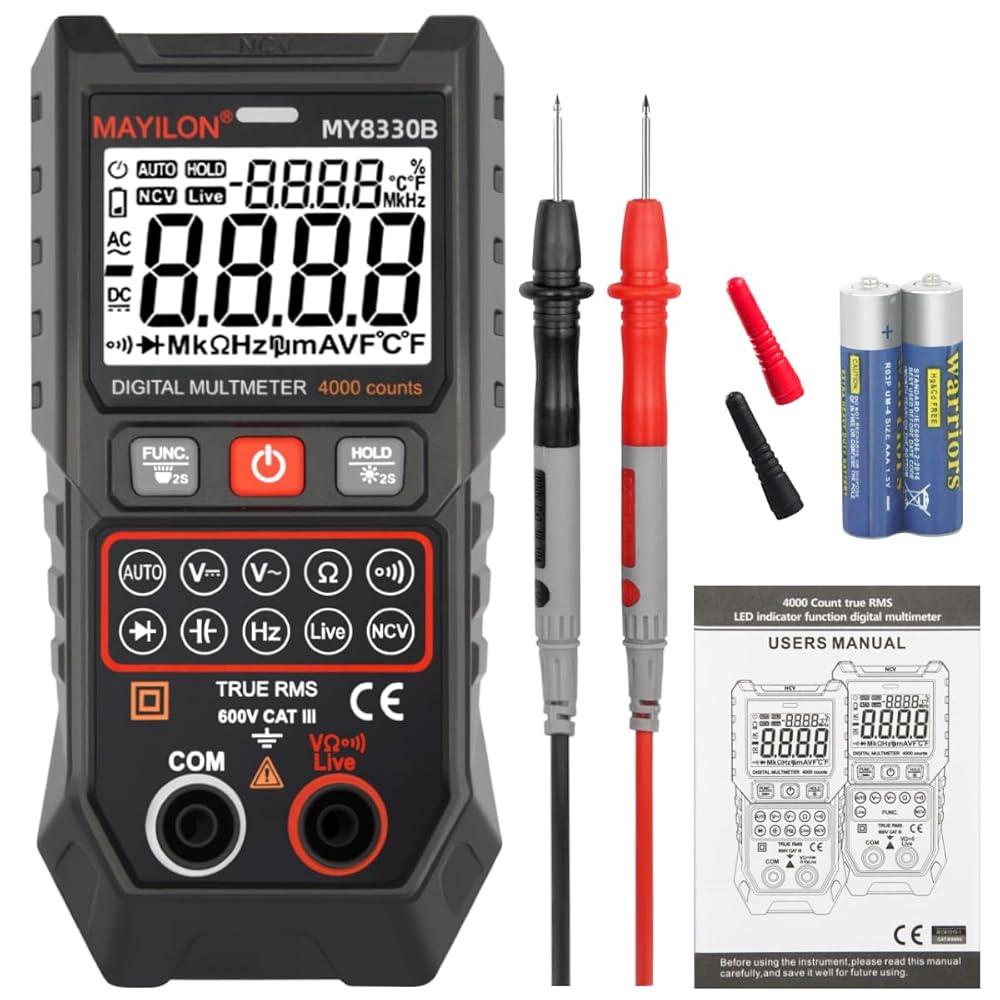 جهاز قياس متعدد TRMS 4000 عدد رقمي متعدد DC AC جهاز قياس الجهد الكهربي التلقائي المدى الفولتميتر مع NCV سلك مباشر مقاومة تردد السعة استمرارية الصمام الثنائي درجة الحرارة للسيارات/المنزل/الكهرباء MY8330B