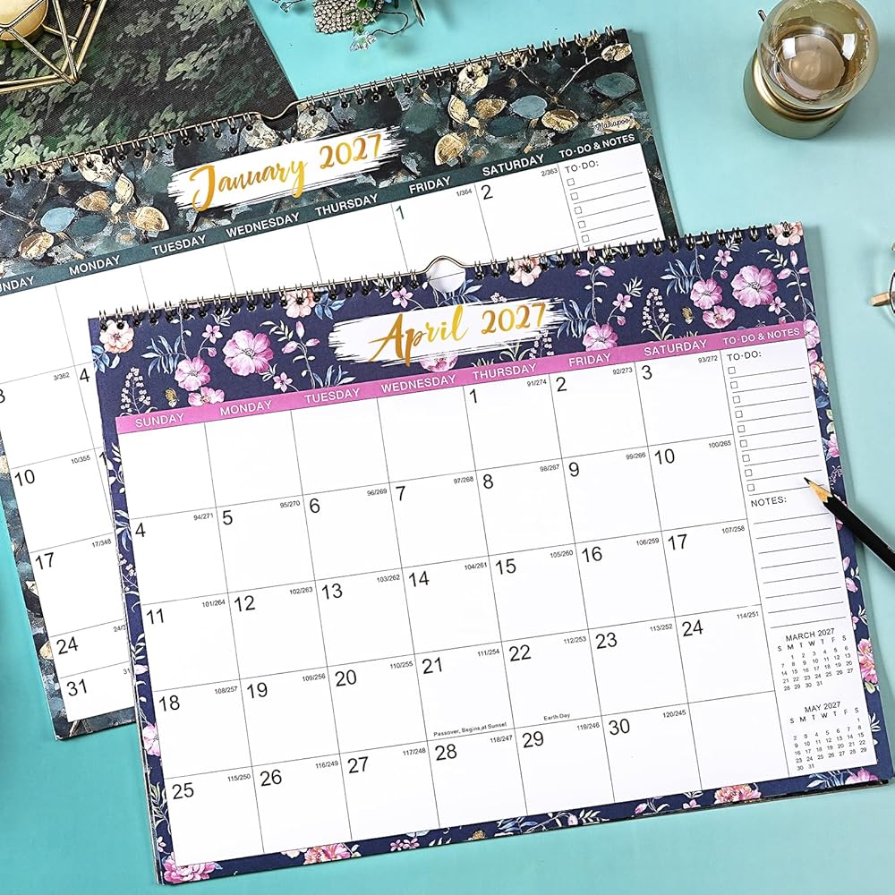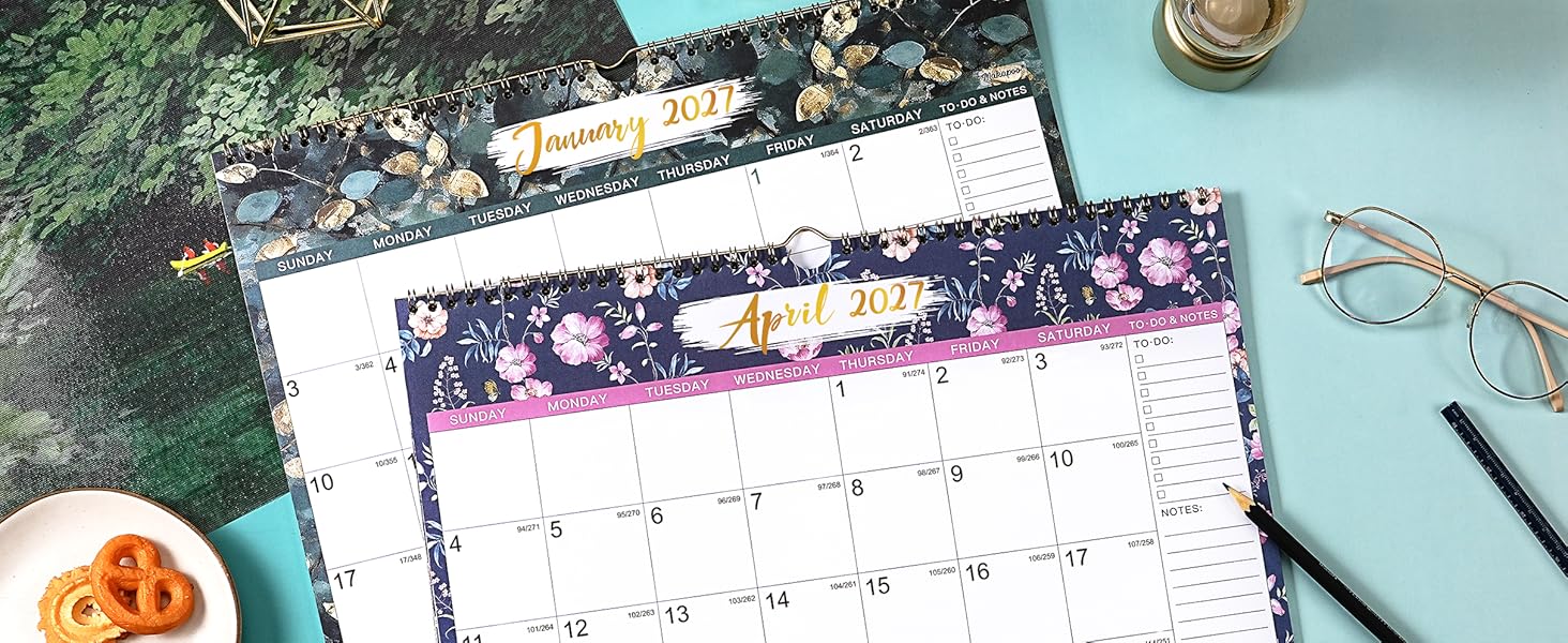 🎄 تفاصيل وظيفية للتقويم 2026-2027 - ربط قوي بسلك مزدوج لقلب الصفحات بسهولة + خطاف تعليق لتعليق التقويم بمرونة + غطاء خلفي صلب لحماية تقويم الحائط الخاص بك 2026-2027 جيدًا.