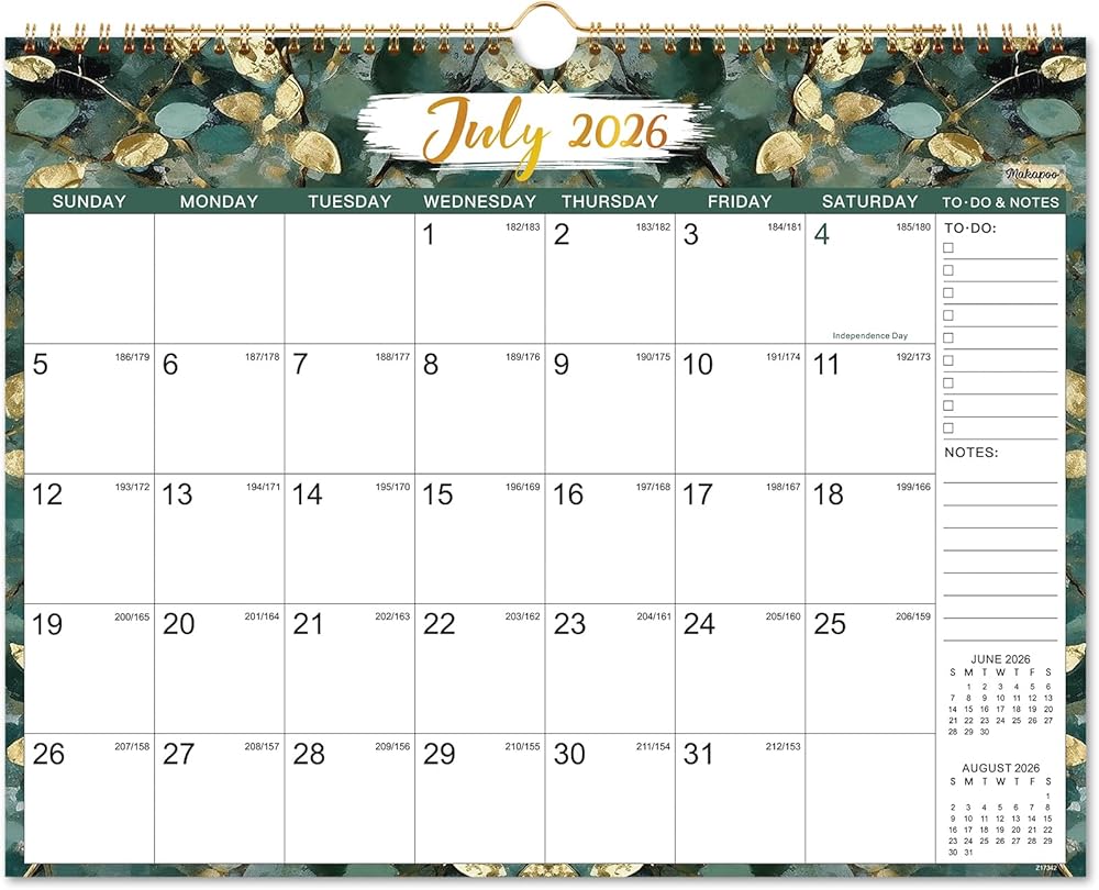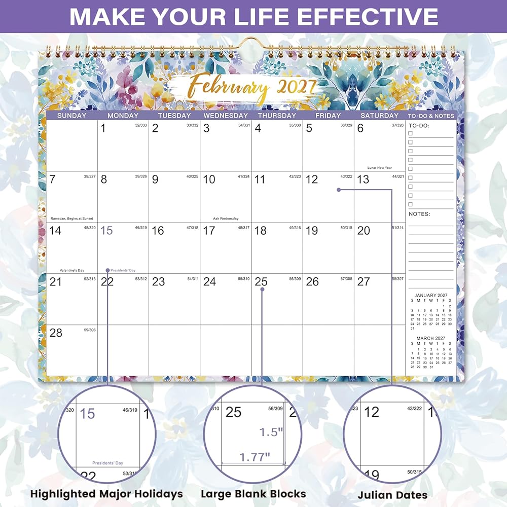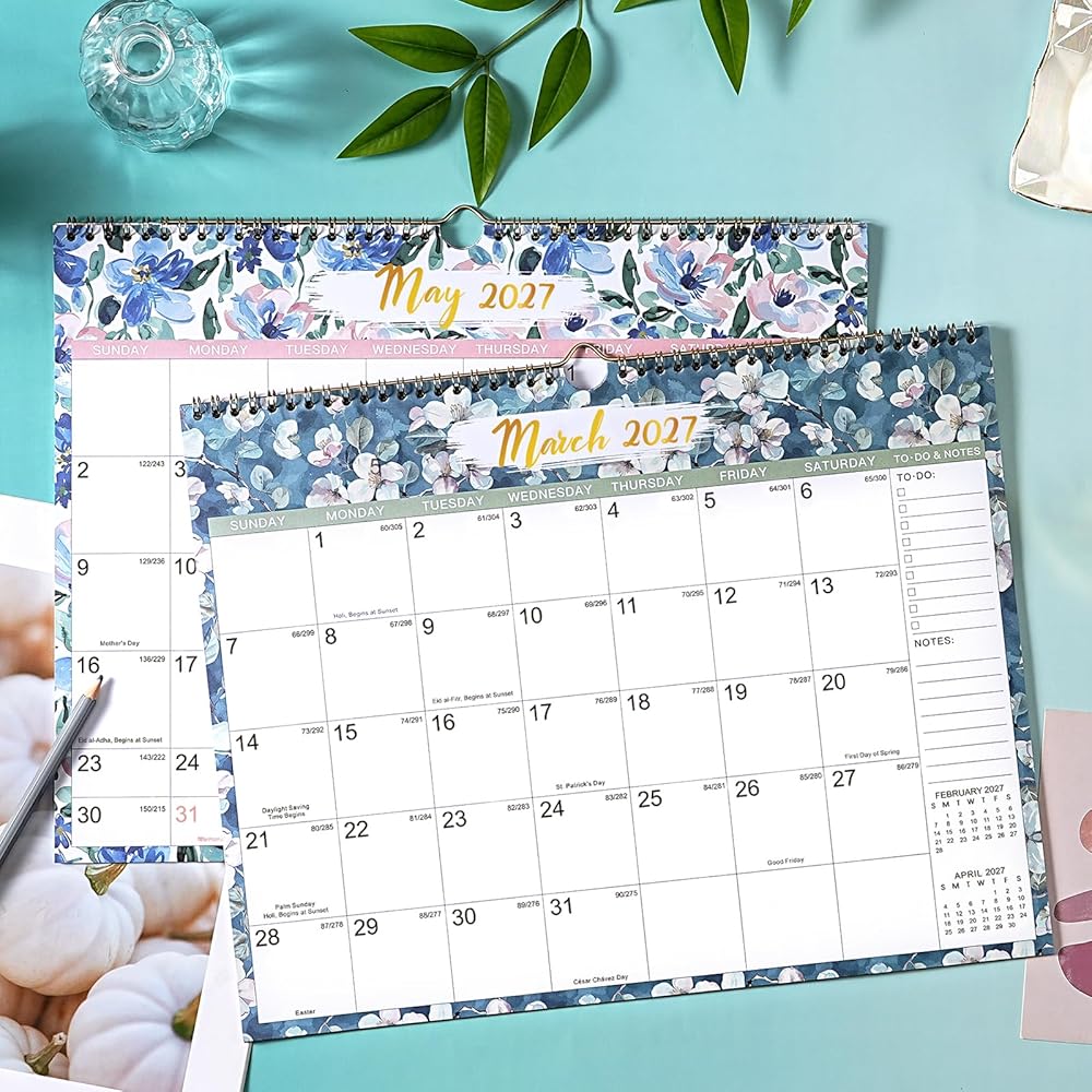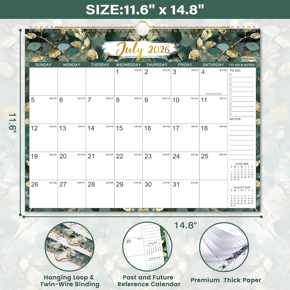 🍃 تصميم محتوى احترافي - 18 صفحة تقويم شهرية مع تقاويم مرجعية + إجازات فيدرالية مميزة + كتل يومية كبيرة (1.5 بوصة × 1.77 بوصة) + تواريخ جوليان. أيضًا، سيمنحك تقويم الحائط هذا 26-27 رؤية شاملة لسنة كاملة مرجعية للخطة.