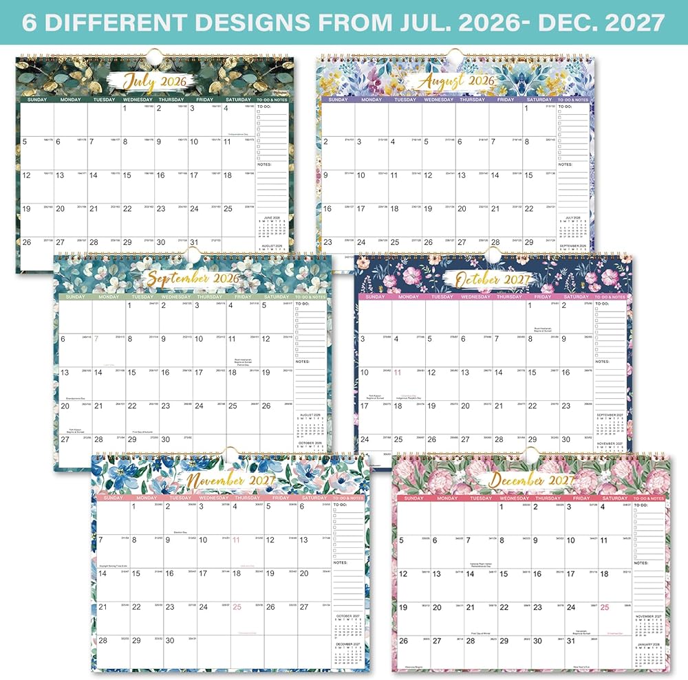 🎄 تقويم حائط 2026-2027 - يغطي تقويم 2026-2027 هذا 18 شهرًا من يوليو 2026 إلى ديسمبر 2027، ويضم 6 أنماط مختلفة. الحجم المثالي 15 بوصة × 11.5 بوصة يعمل بشكل رائع على المكتب أو الحائط أو الثلاجة أو في المطبخ، ويلبي جميع احتياجاتك.