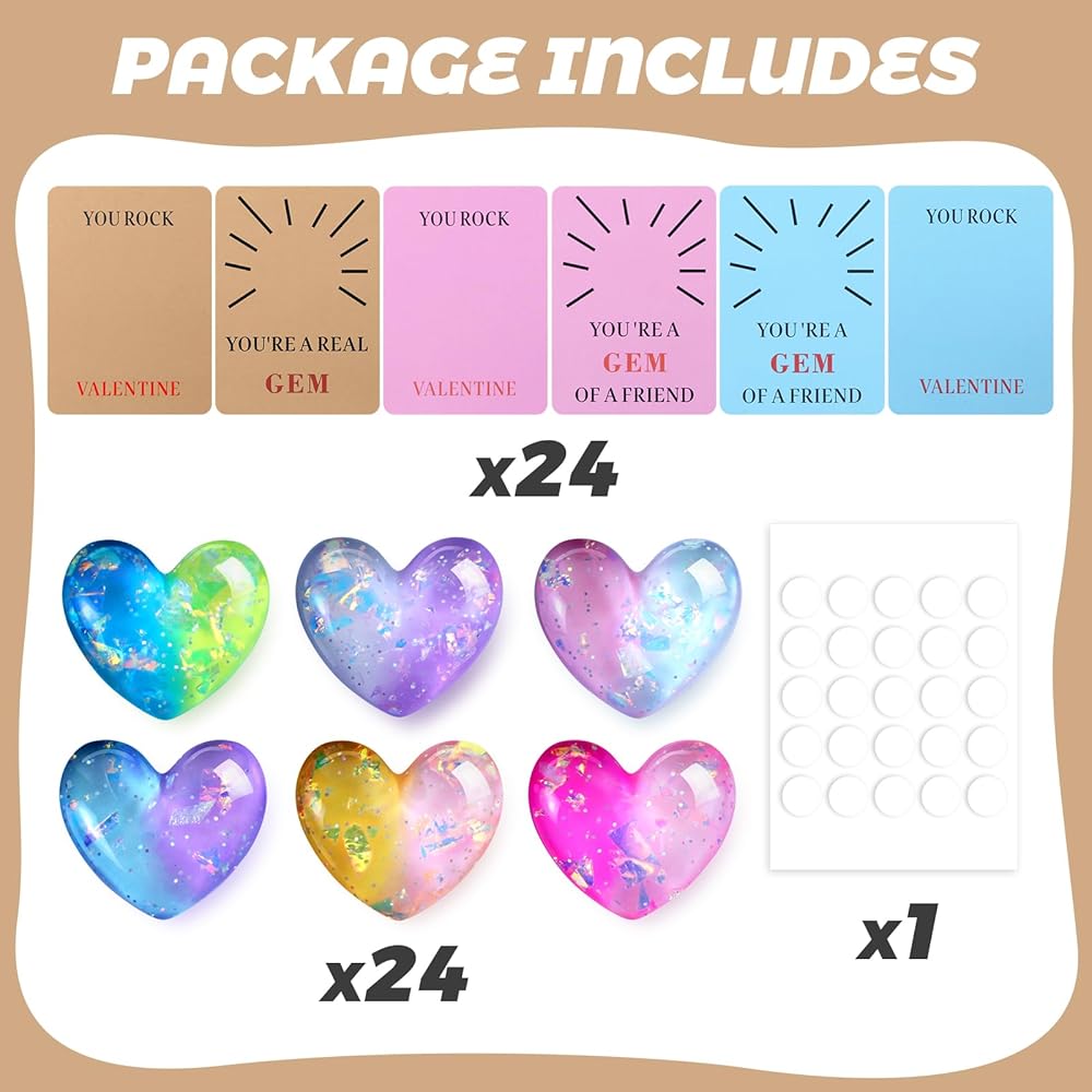 بطاقات عيد الحب للأطفال في الفصل الدراسي: تحتوي على 24 بطاقة جميلة، و24 حجرًا متلألئًا على شكل قلب، و24 نقطة لاصقة شفافة. يمكنك تجميع بطاقات عيد الحب نفسها، ولصق الأحجار لإنشاء تحيات عيد الحب الفريدة والمخصصة.