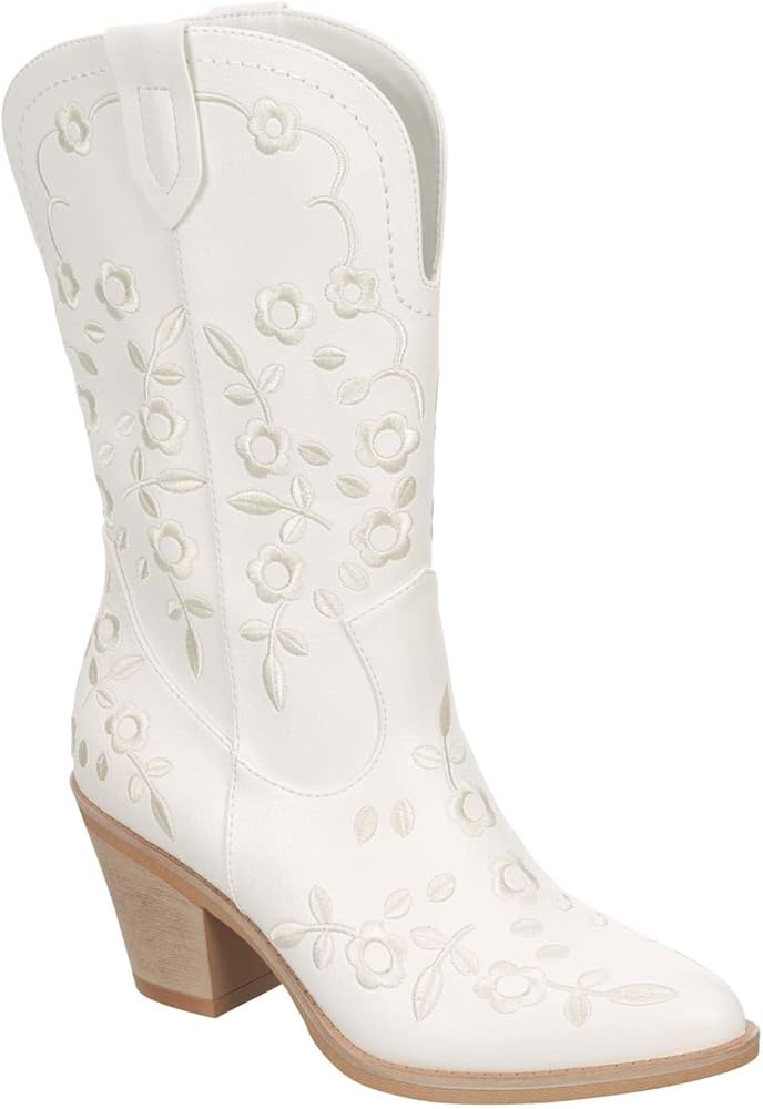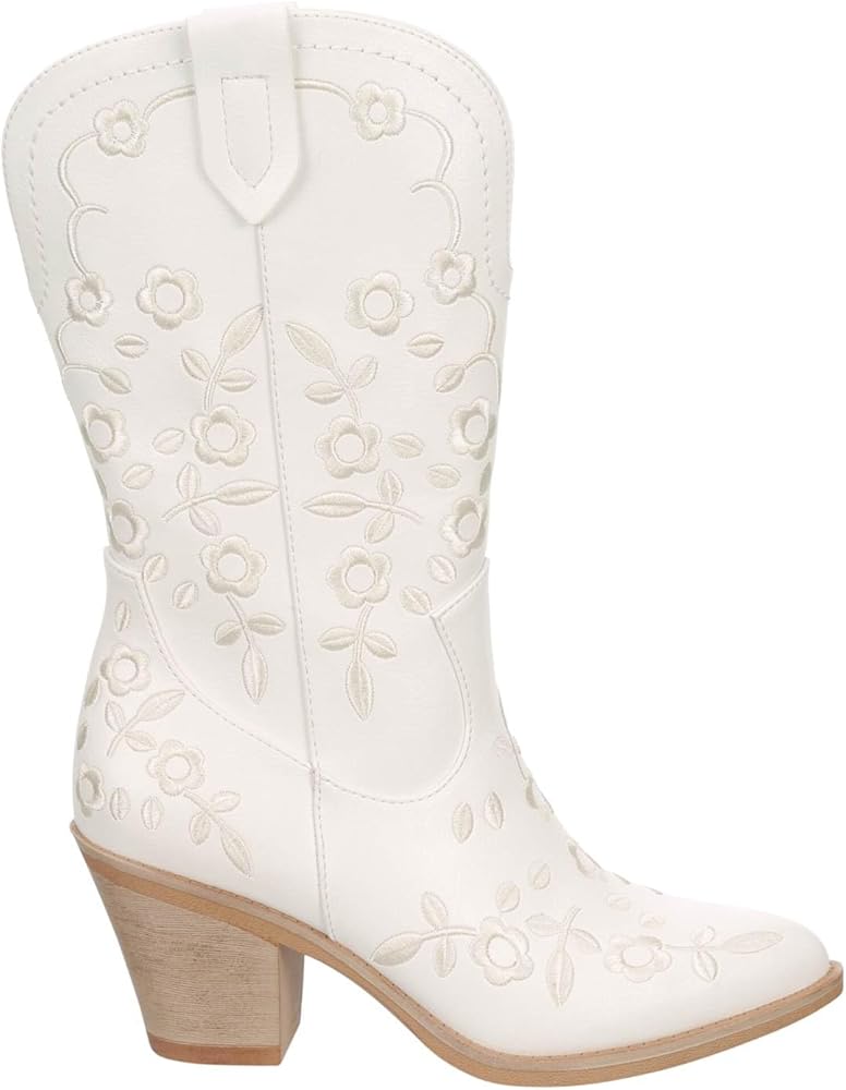 Limelight Kimura - حذاء نسائي طويل من الجلد الصناعي سهل الارتداء لراعية البقر باللون الأبيض، مقاس 10.0 متوسط العرض