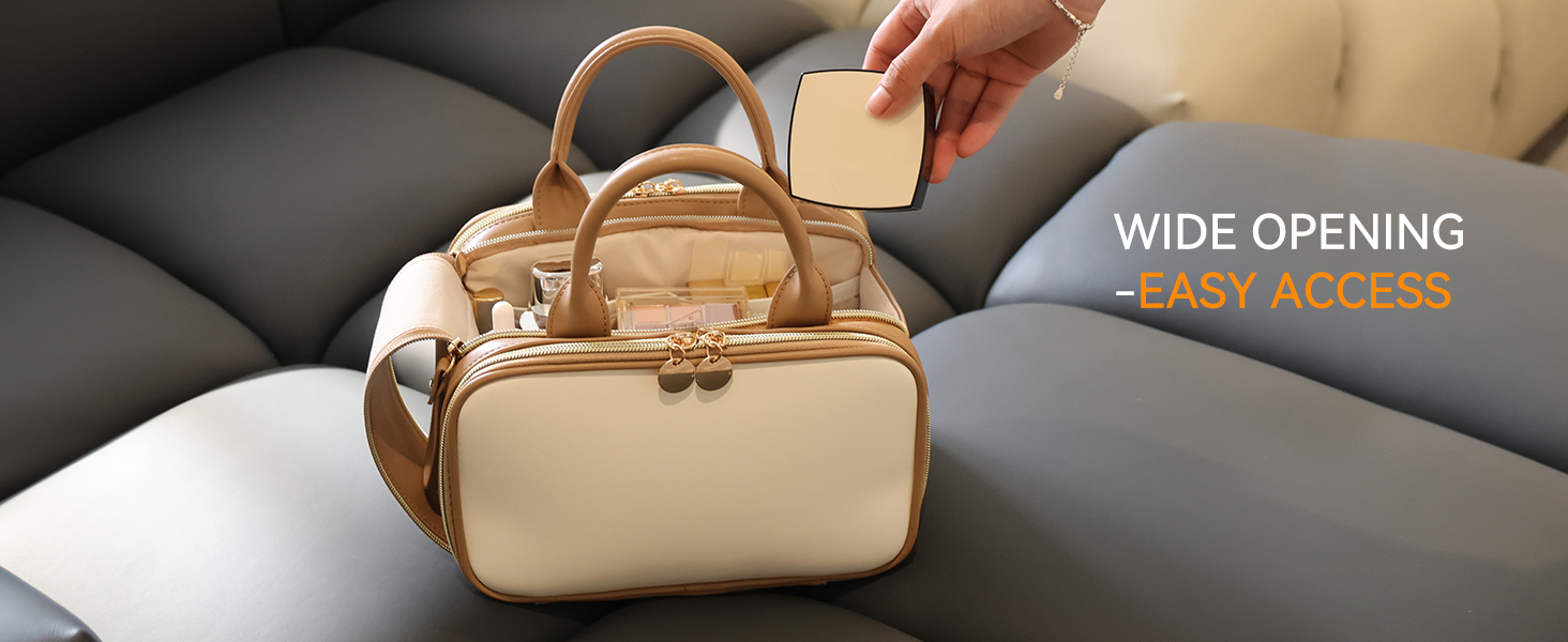 • 【سهولة الحمل والوصول】امسك وانطلق بسهولة! سحابات مزدوجة تفتح وتغلق بسلاسة. المقبض الجلدي العلوي يشعر بالنعومة والراحة. يتم وضعها بشكل مسطح تمامًا، وتمنحك الفتحة الواسعة رؤية واضحة لكل شيء بالداخل - محطة المكياج المحمولة الخاصة بك!