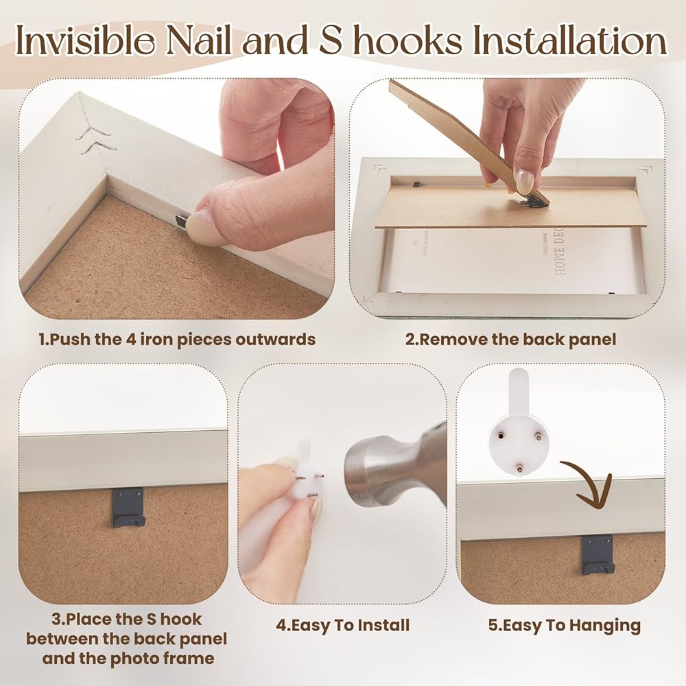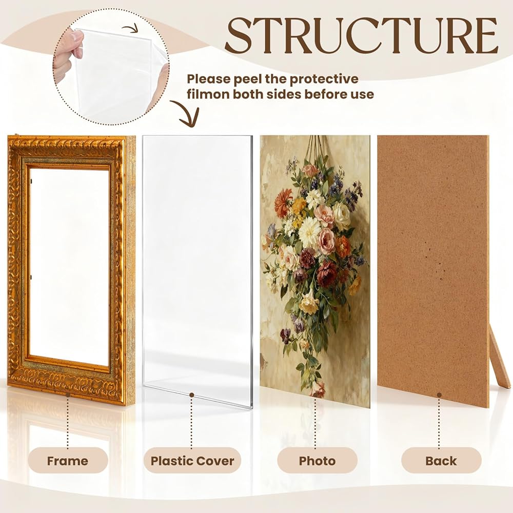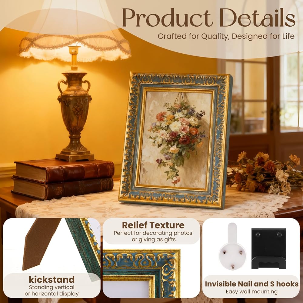 These vintage photo frames are prepared for immediate use. The package includes everything needed for both wall hanging and tabletop placement. This allows you to quickly arrange your pictures upon unboxing. It is a convenient option for creating home decor without extra effort.