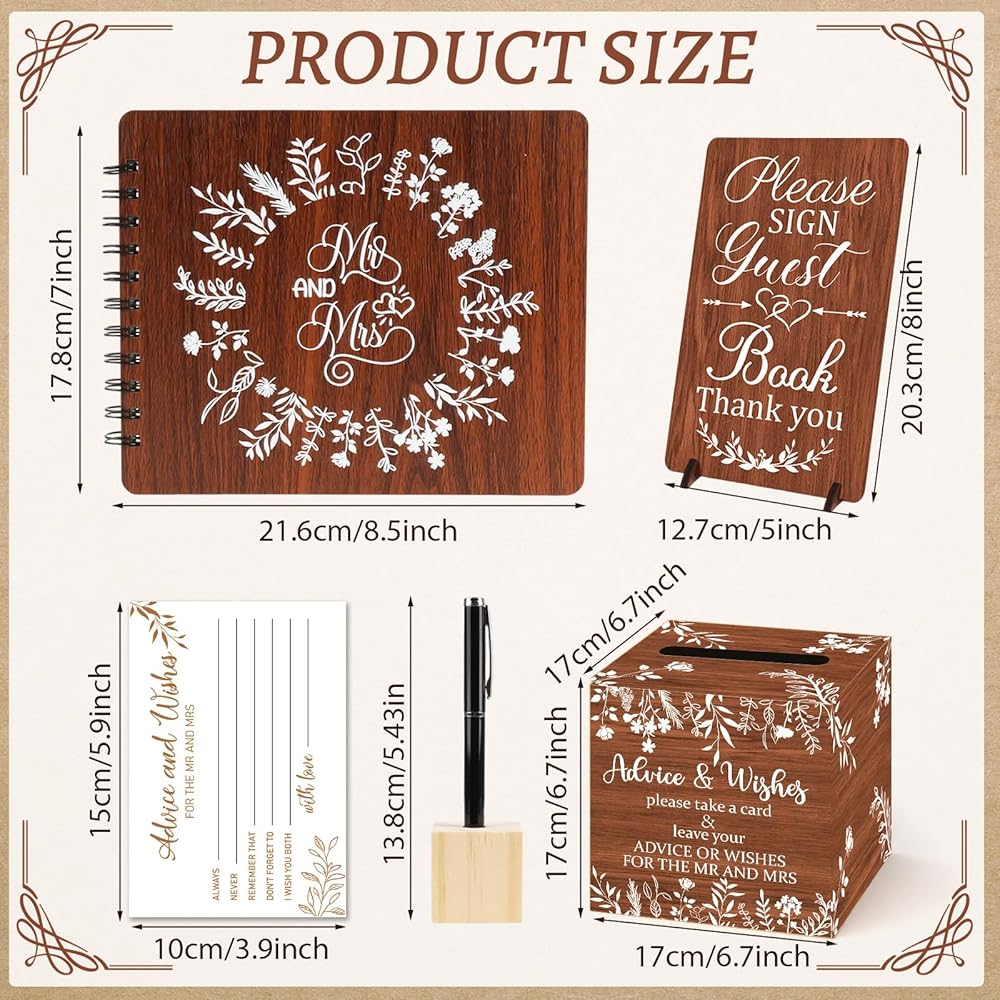 كتاب ضيوف حفل الزفاف الخشبي، تسجيل الدخول في سجل الزوار مع قلم وحامل، لافتة طاولة، صندوق بطاقات الذاكرة، ألبوم تسجيل الذاكرة 64 صفحة لمستلزمات الخطوبة السنوية